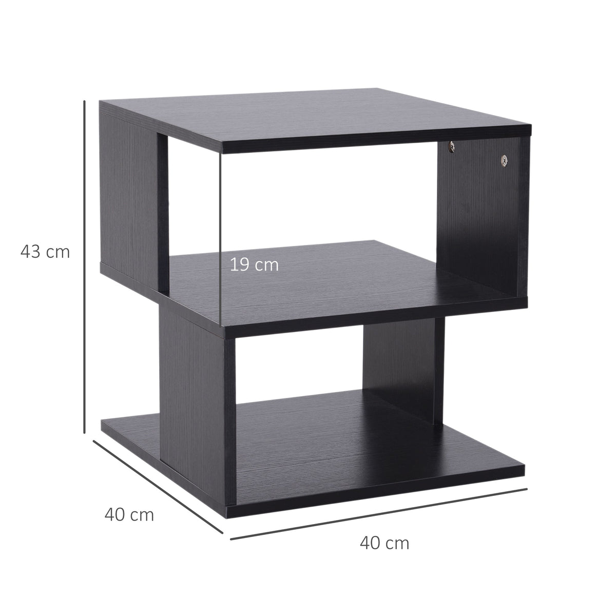 HOMCOM Set of 2 Side Table Square Coffee Table, Modern End Table with 2 Tier Storage Shelves for Living Room, Bedroom, Black - Black