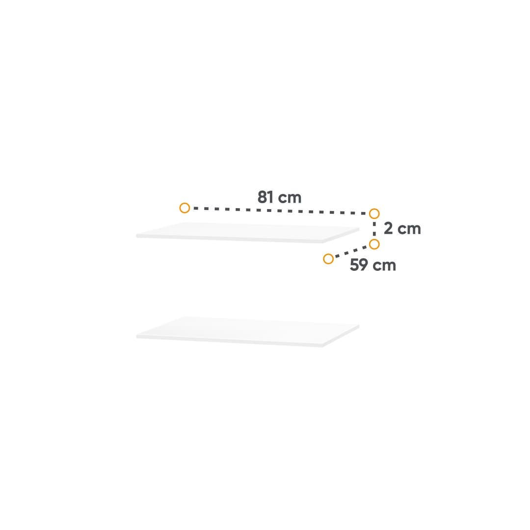 FEATURES AND SPECIFICATIONS Dimensions: W81cm x H2cm x D59cm Colour: White Two Shelves Compatible With Maxi MX-06 Sliding Door Wardrobe...