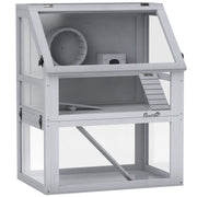 PawHut Wooden Hamster Cage with Detachable 32cm Deep Bottom, Hut, Seesaw, Exercise Wheel, Ramp, 60 x 40 x 75cm, Light Grey - Light Grey