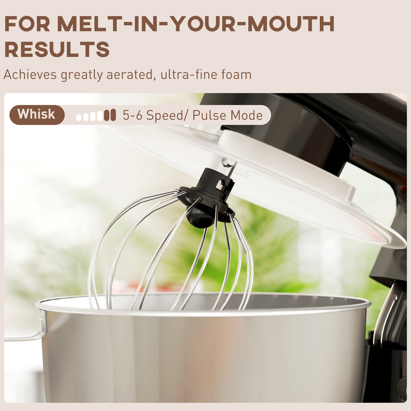 HOMCOM 1300W Kitchen Stand Mixer, with Accessories - Black - Black