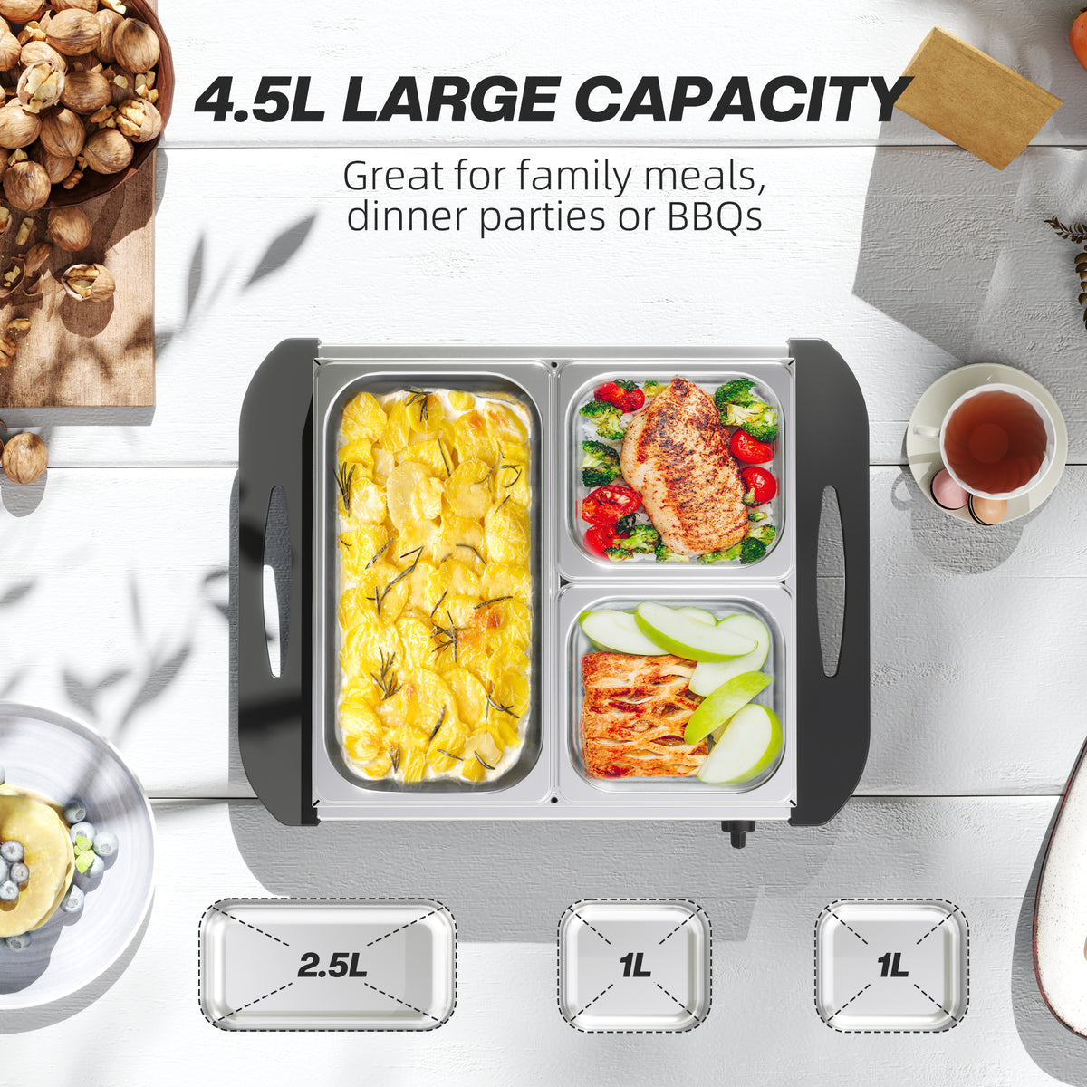 HOMCOM 4.5L Stainless Steel Electric Buffet Server, with 3x Trays and Lids