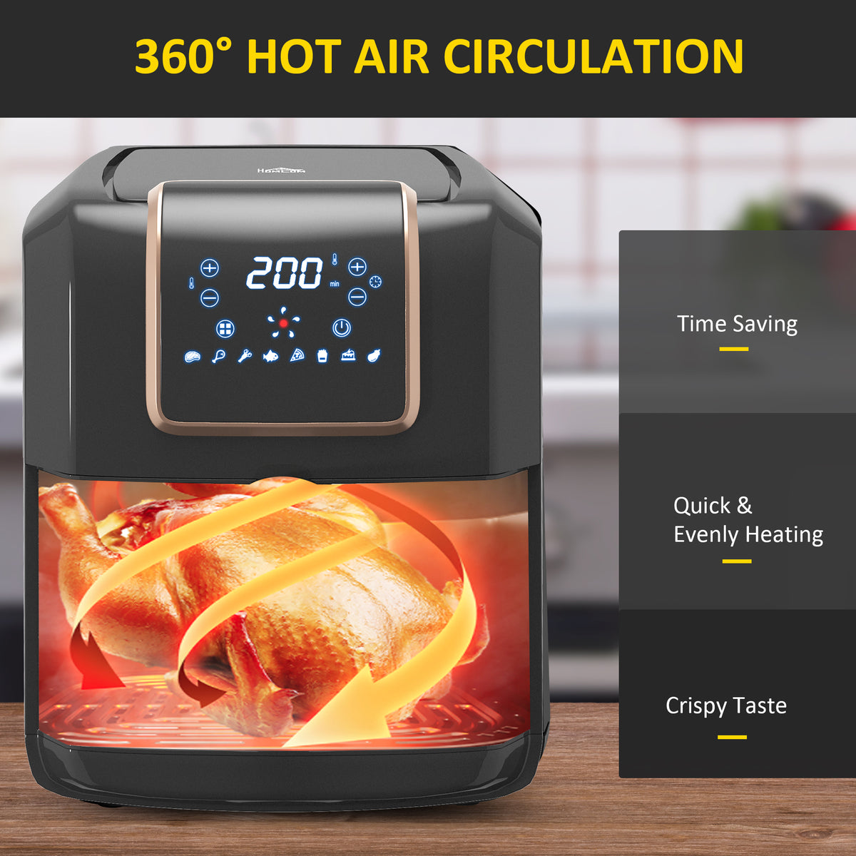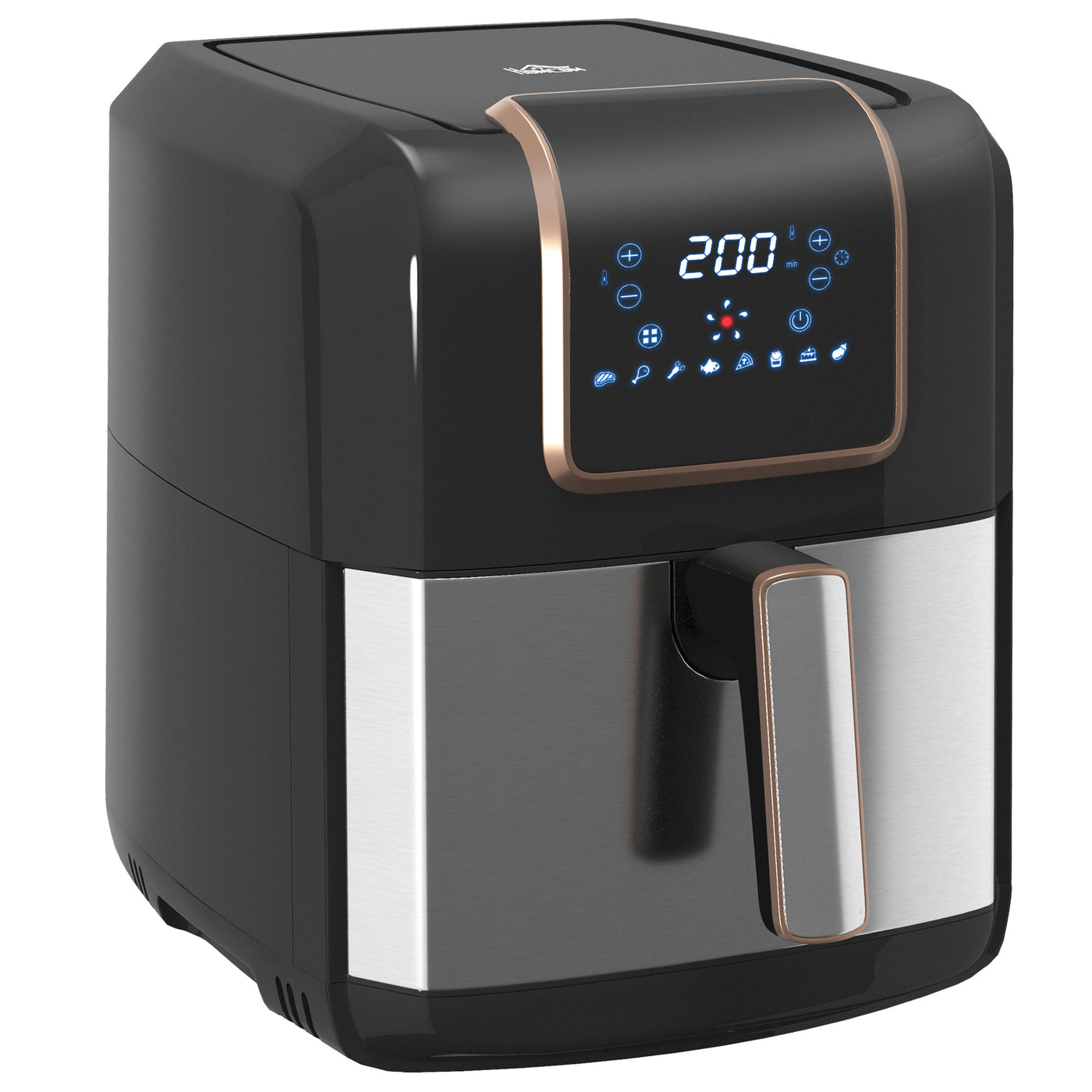HOMCOM 6.5L Single Basket Air Fryer, 80-200°C Temperature, Black and Gold Tone - Black, Gold Tone