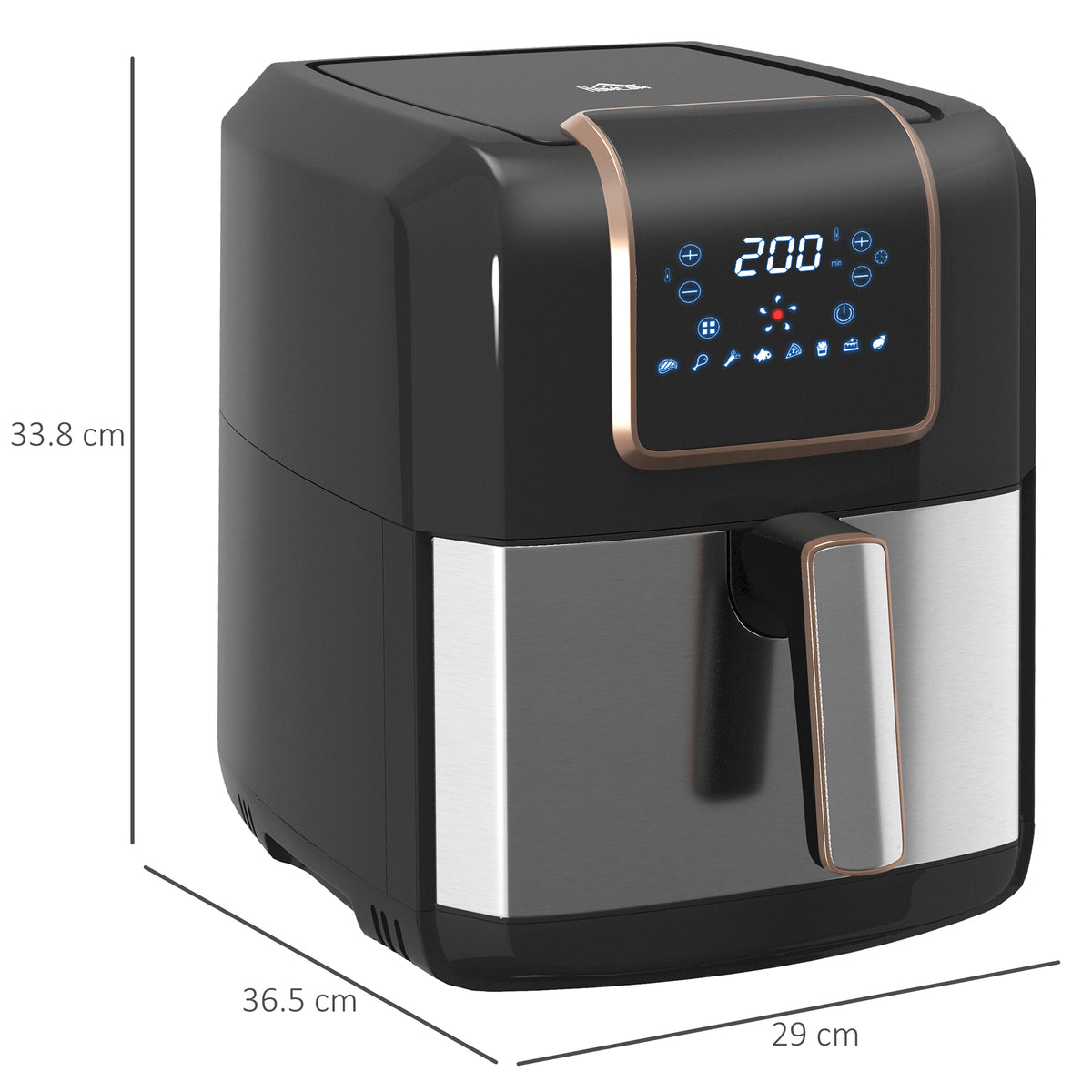 HOMCOM 6.5L Single Basket Air Fryer, 80-200°C Temperature, Black and Gold Tone