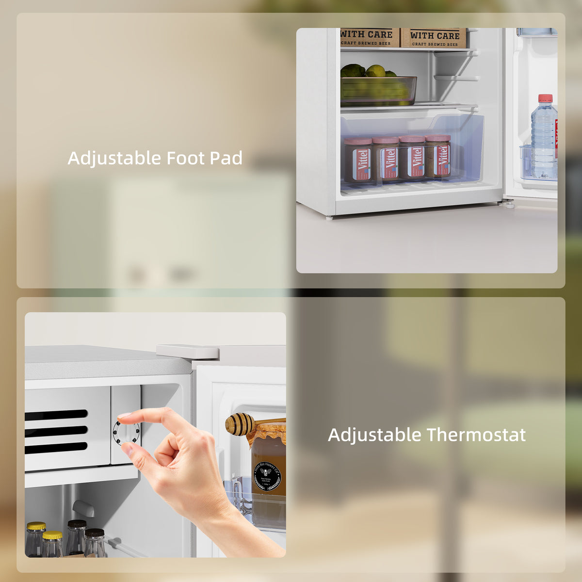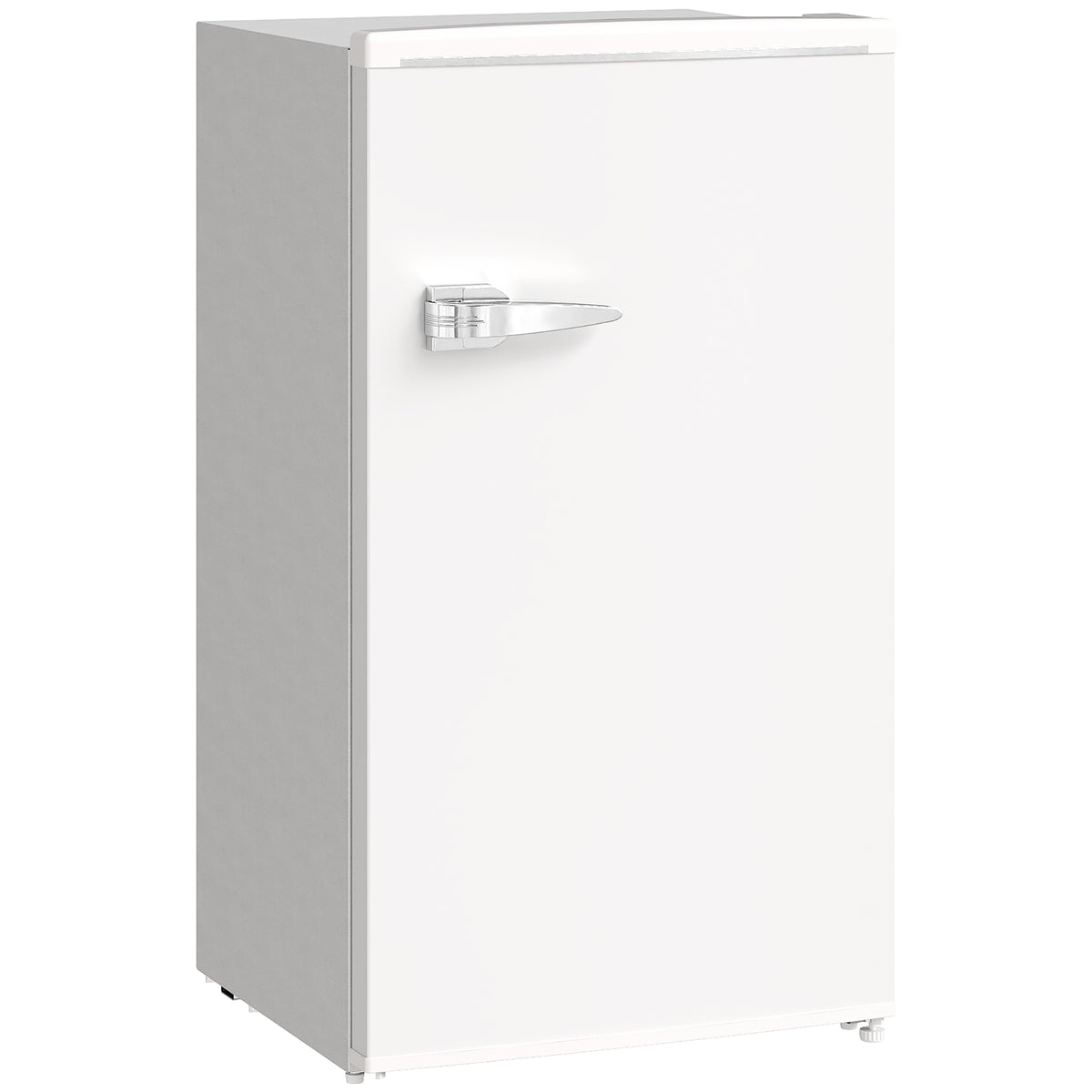 HOMCOM Under Counter Fridge, 85L Small Retro Refrigerator with Chiller Box, Adjustable Thermostat, Glass Shelves, White - White