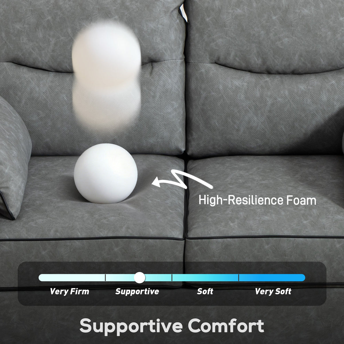 HOMCOM 2 Seater Sofa, Faux Leather Loveseat - Grey - Grey