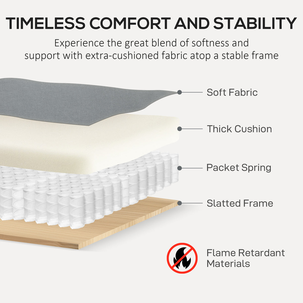 HOMCOM 3 Seater Sofa, Modern Fabric Sofa Couch with Spring Cushion, Rubber Wood Legs, 191cm Upholstered Settee for Living Room, Bedroom, Home Office, Guest Room, Grey - Grey