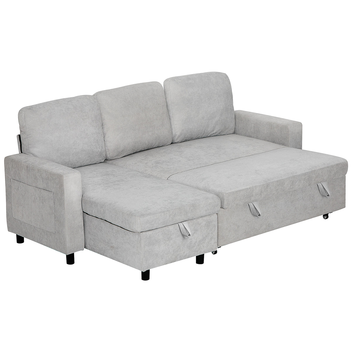 HOMCOM L Sofa Bed, with Storage - Light Grey
