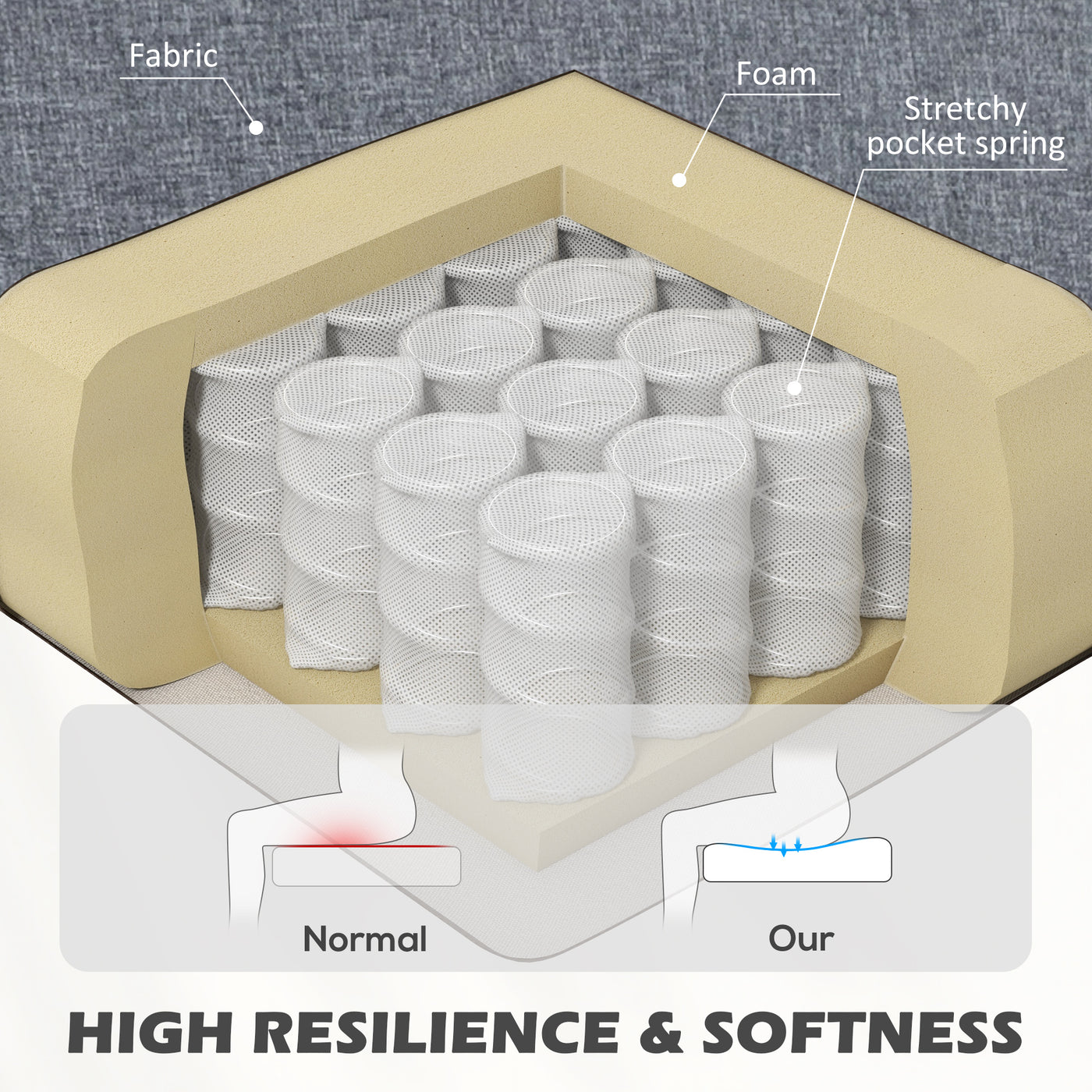 HOMCOM Modern Accent Chair, Occasional Chair with Rubber Wood Legs for Living Room, Bedroom, Grey - Grey