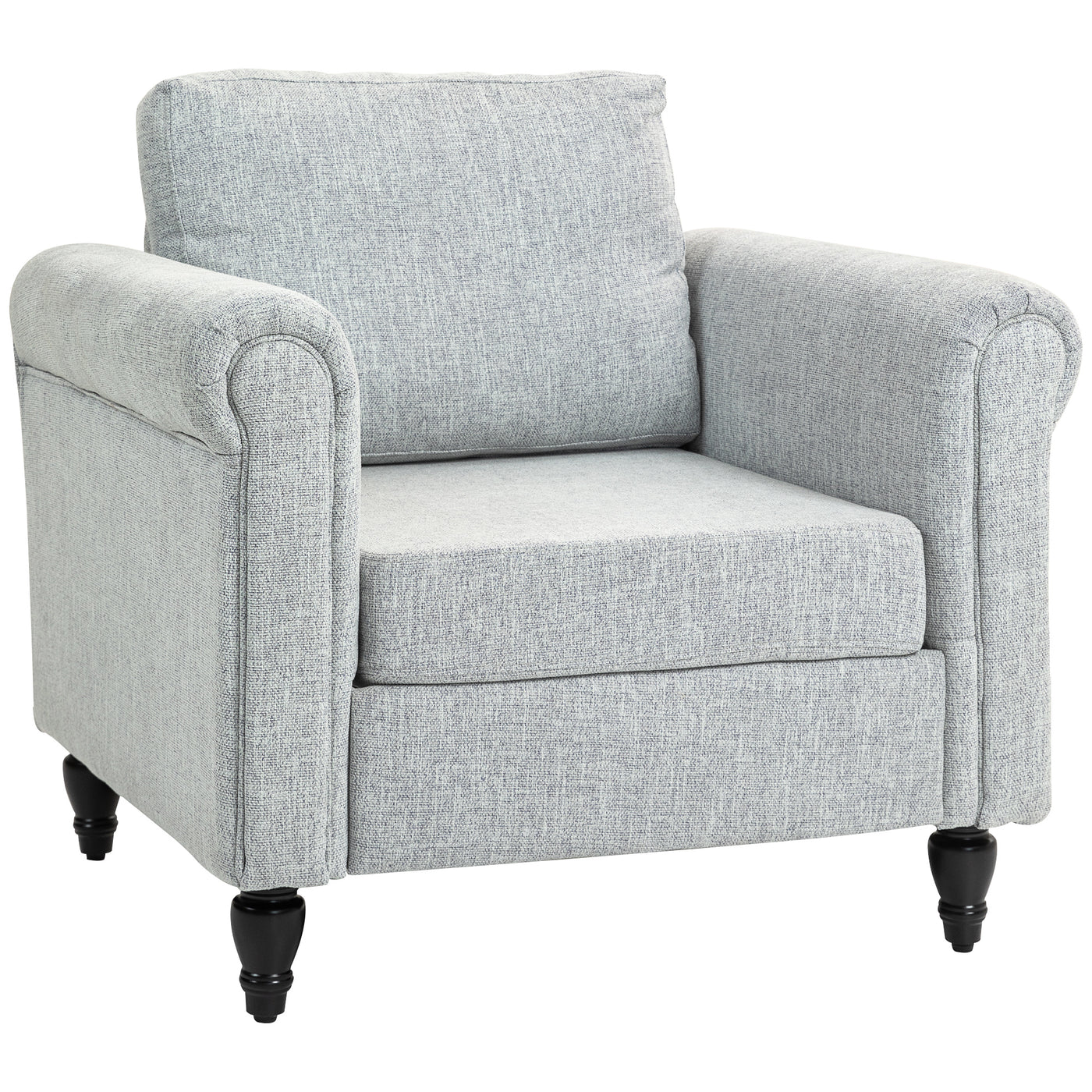 HOMCOM Vintage Accent Chair, Upholstered Occasional Chair with Back Pillow, Rolled Arms, Rubber Wood Legs, Light Grey - Light Grey