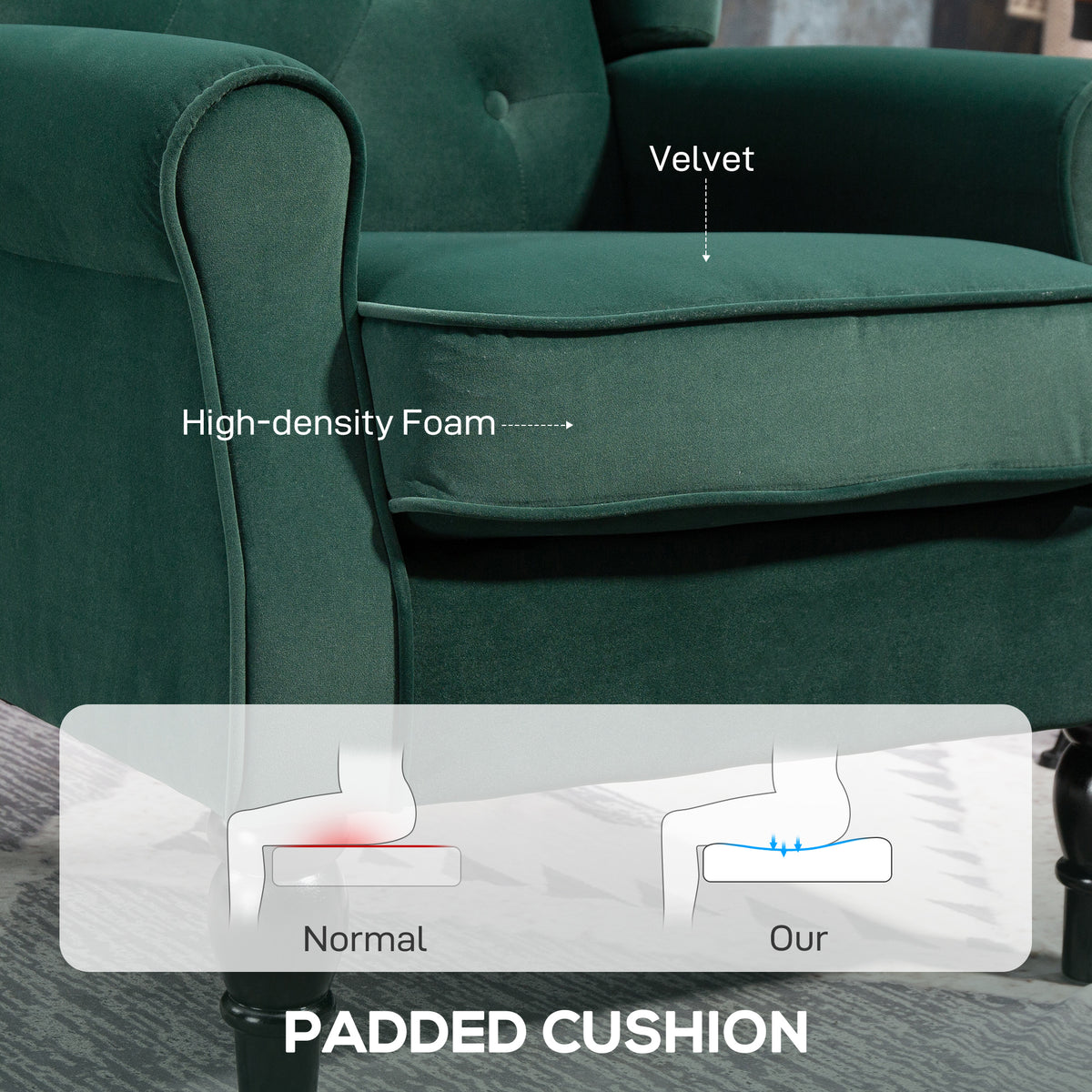 HOMCOM Wingback Accent Chair, Retro Upholstered Button Tufted Occasional Chair for Living Room and Bedroom, Green - Green