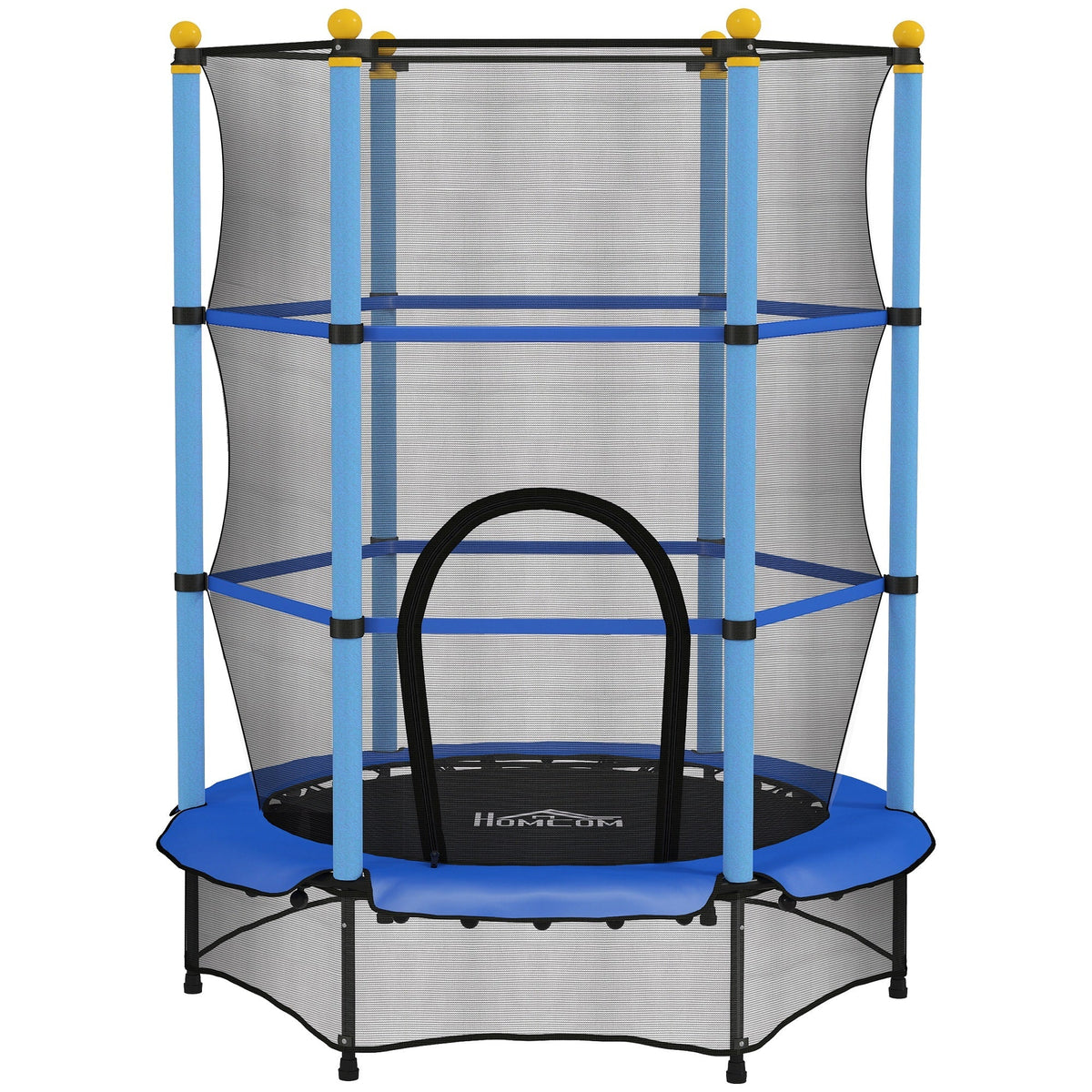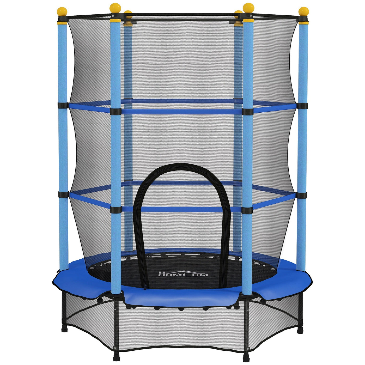 HOMCOM 4.6FT/55" Kids Trampoline with Safety Enclosure, Outdoor Indoor Use, for Ages 3-10 Years, Blue - Blue
