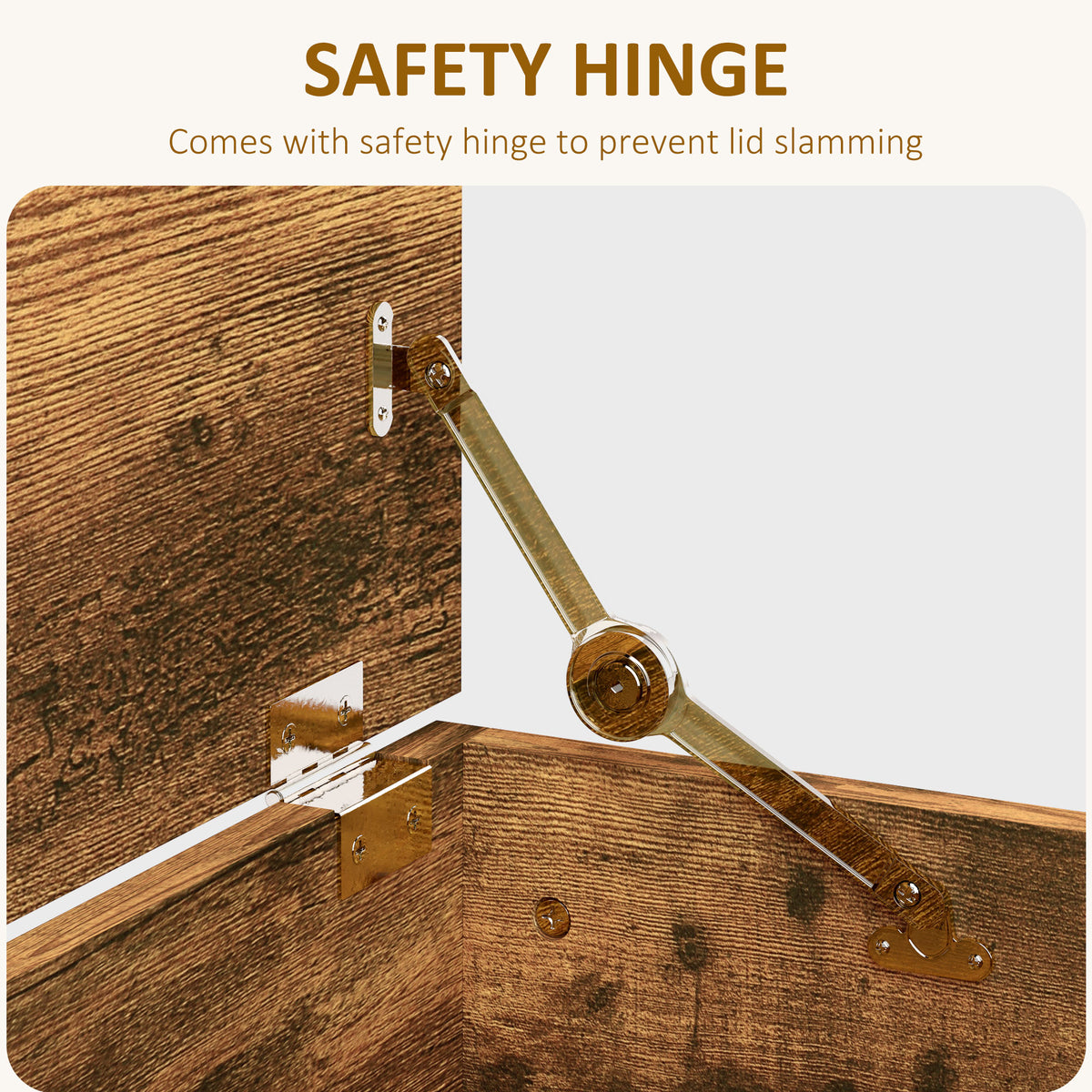 HOMCOM 113L Storage Chest, Storage Box with Flip-Top Lid and 2 Safety Hinges, Storage Trunk for Living Room, Entryway, 100 x 40 x 40 cm, Rustic Brown - Rustic Brown