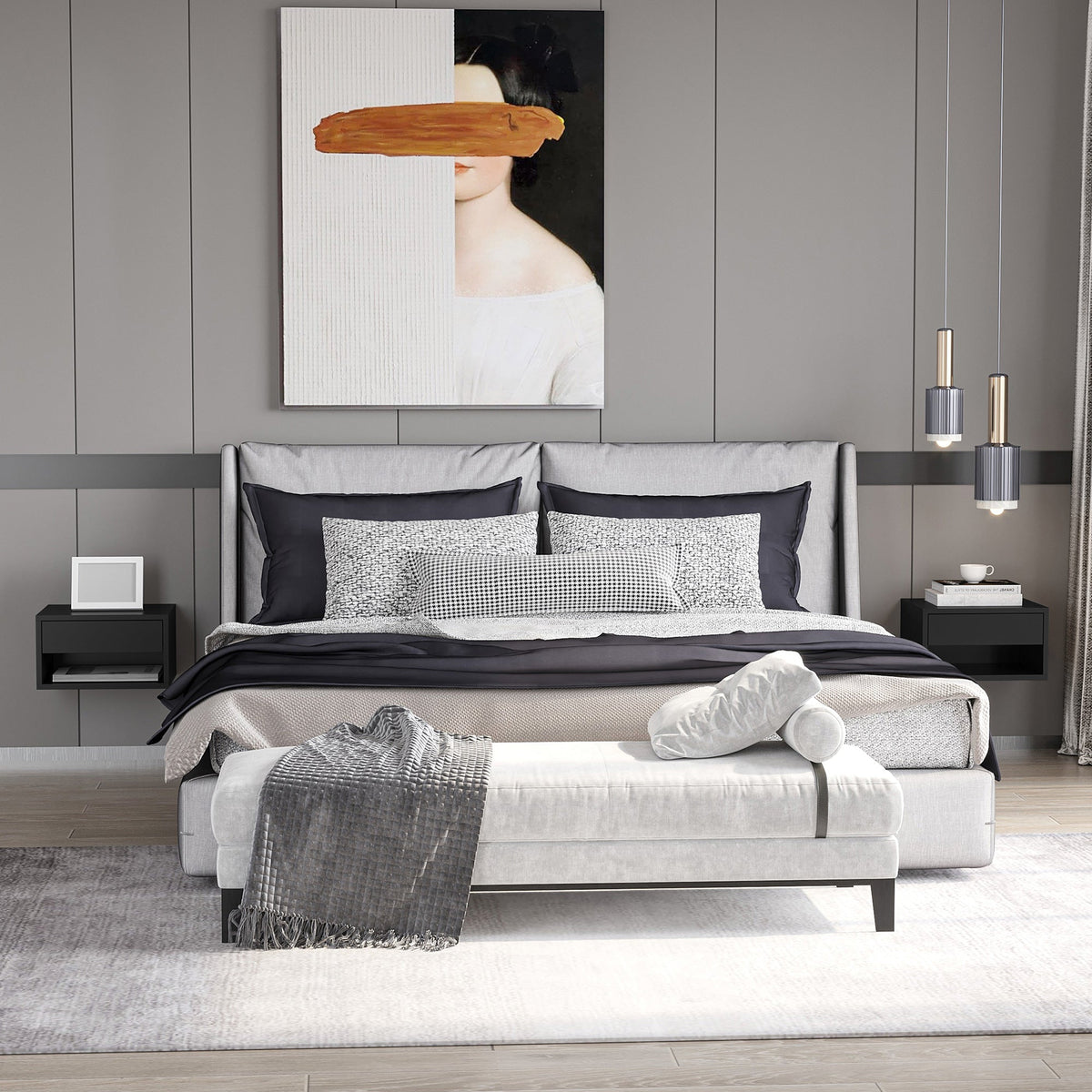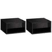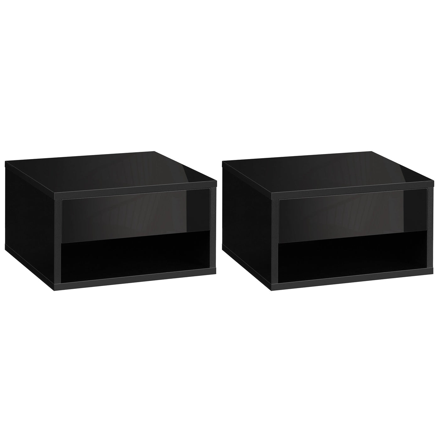 HOMCOM 2 Pieces Bedside Table Wall Mounted Nightstand with Drawer and Shelf for Bedroom, 37 x 32 x 21cm, High Gloss Black - Black