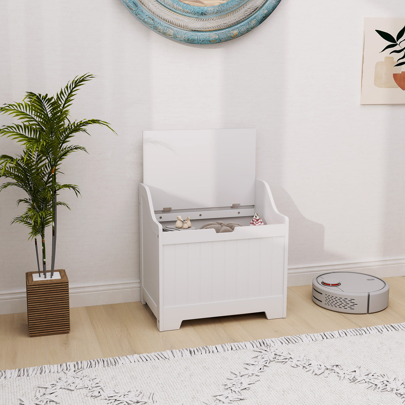 HOMCOM 61L Home Storage Chest - White - White
