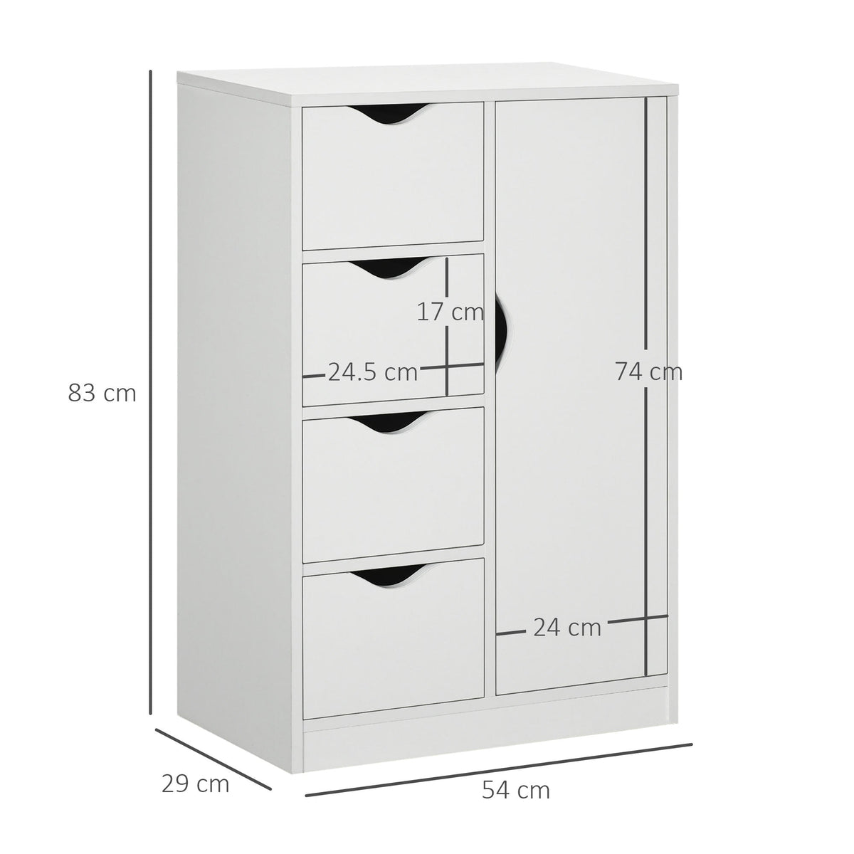 HOMCOM Bathroom Cabinet, Freestanding Storage Cabinet with 4 Drawers, Door Cupboard for Living Room, Kitchen, Bedroom, White - White