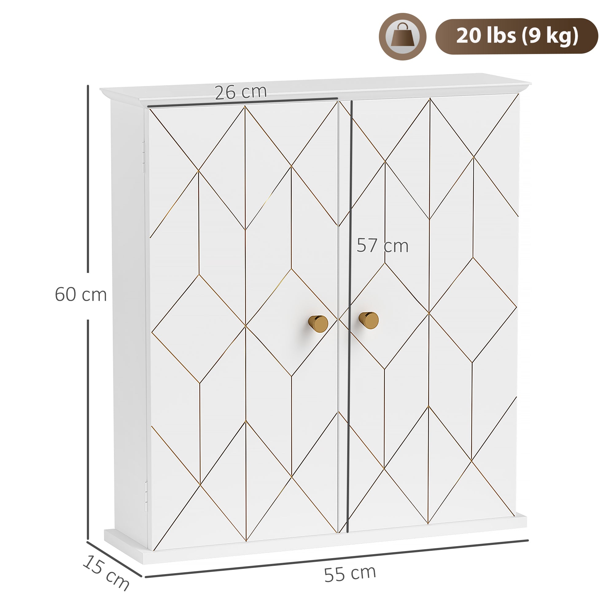HOMCOM Bathroom Cabinet Wall Mounted, Bathroom Wall Cabinet Medicine Cabinet with 2 Doors, Adjustable Shelf, White - White