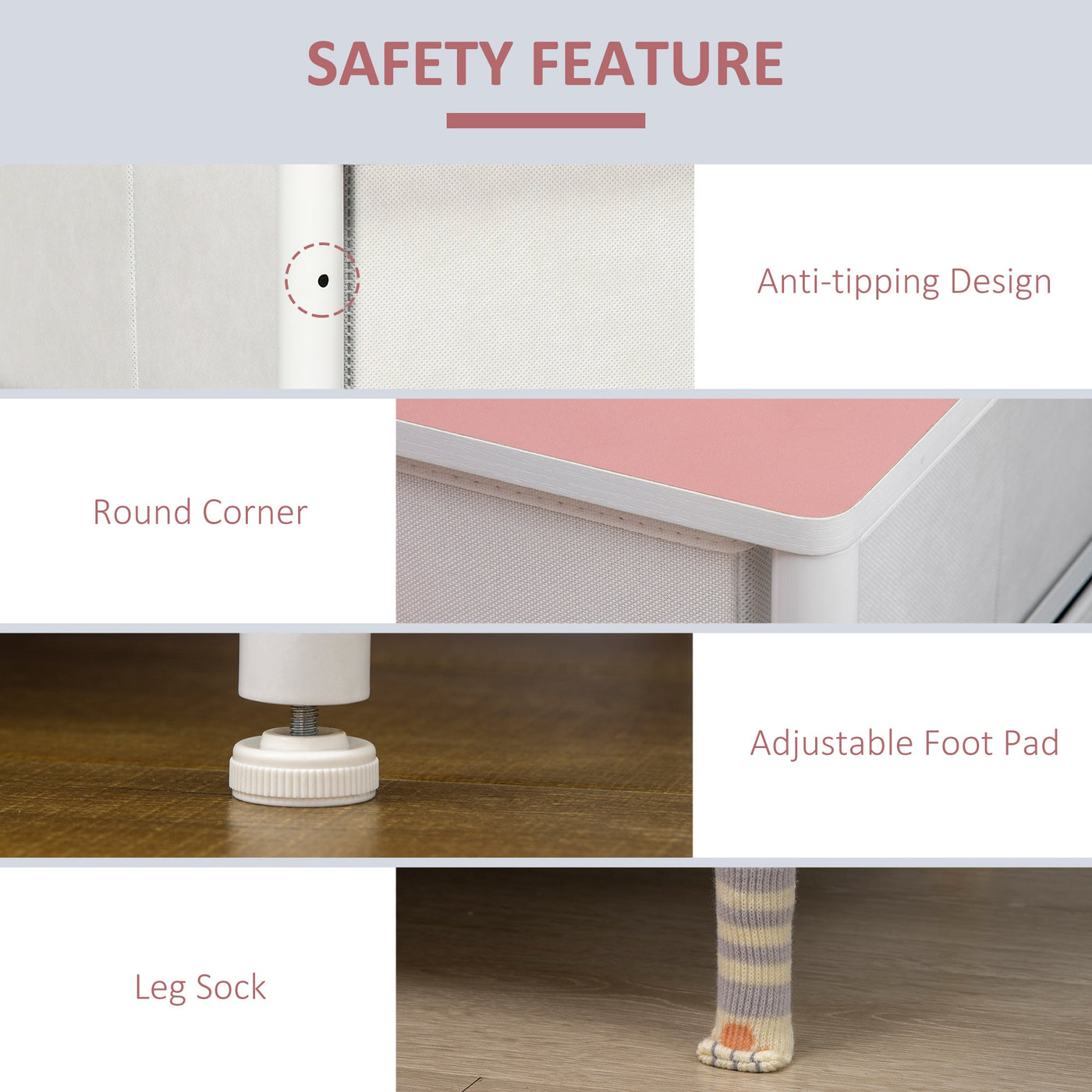 HOMCOM Chest of Drawers, Cloth Organizer Unit with 6 Fabric Drawers, Metal Frame and Wooden Top, Storage Cabinet for Kids Room, Living Room, Closet, Hallway, Pink - Pink