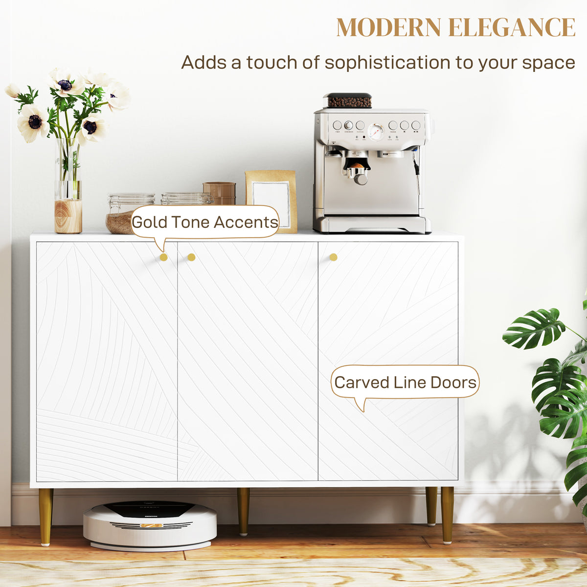 HOMCOM Elegant Two-Cupboard Sideboard - White/Gold-Tone
