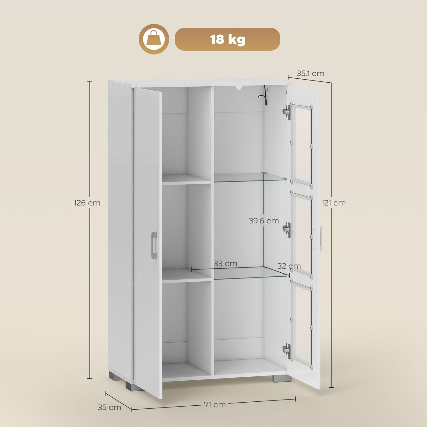 HOMCOM High Gloss Sideboard, Display Cabinet with 16-Colour RGB LED Lights and Remote Control, Modern Storage Cupboard with Glass Doors and Shelves for Living Room, Dining Room, Kitchen, White - White