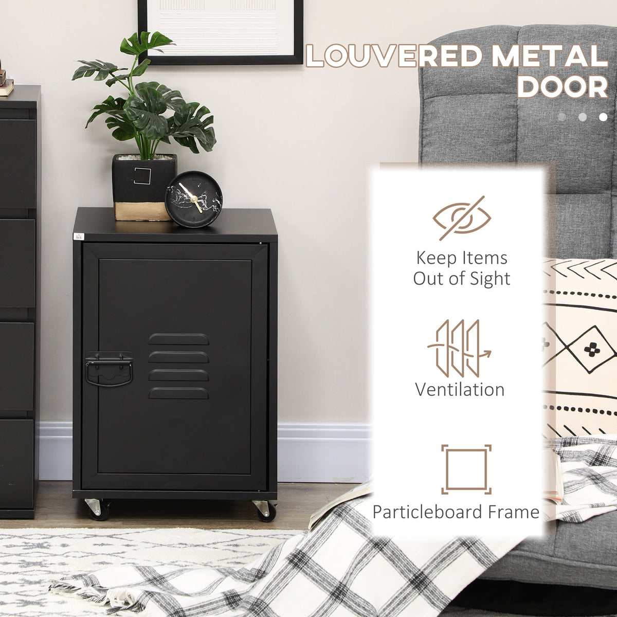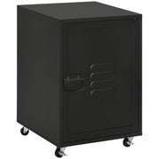 HOMCOM Rolling Metal Storage Locker Cabinet, Industrial Mobile Lockable Cabinet with Adjustable Shelf and Wheels for Home Office Living Room, Black - Black