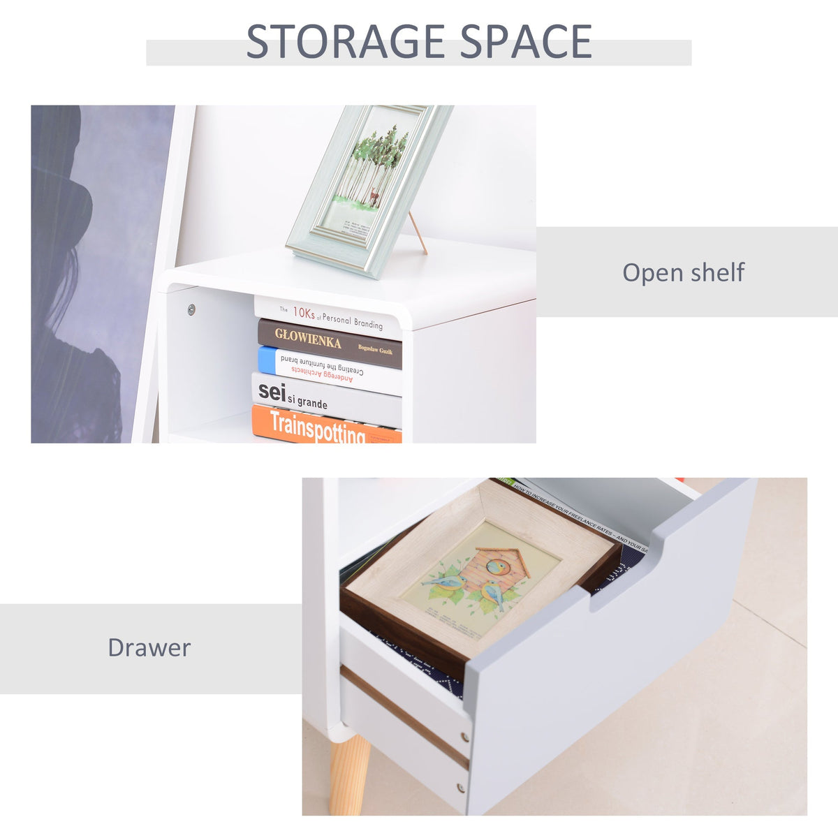 HOMCOM Wooden Bedside Table End Nightstand With Drawer Wood Lamp Desk Storage Unit Bedroom Scandinavian Nordic Style - White, Grey, Natural Wood