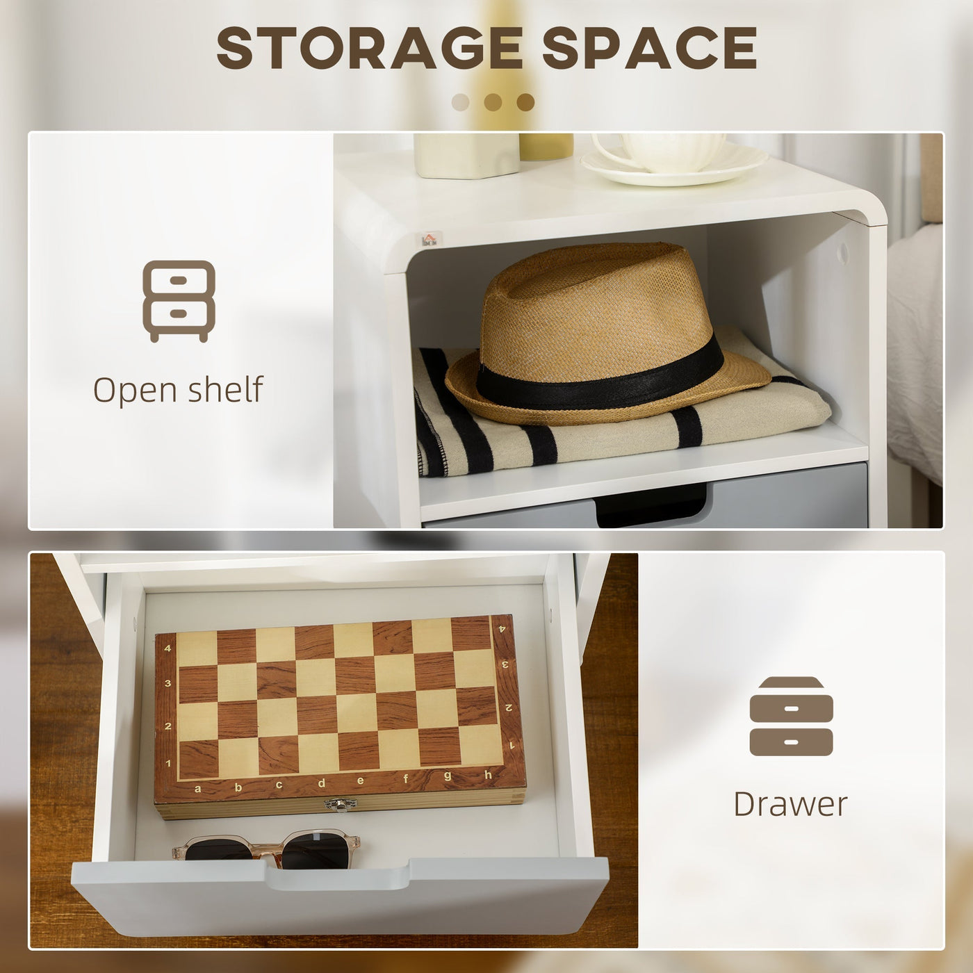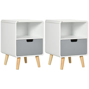 HOMCOM Wooden Bedside Table End Nightstand With Drawer Wood Lamp Desk Storage Unit Bedroom Scandinavian Nordic Style, Set of 2 - White, Grey, Natural Wood