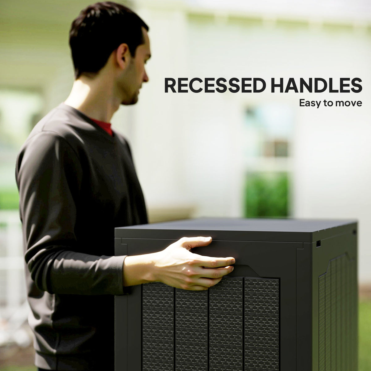 Outsunny 93L Plastic Garden Storage Box, Outdoor Storage Box with Handles, Waterproof Outdoor Storage Container, Black - Black