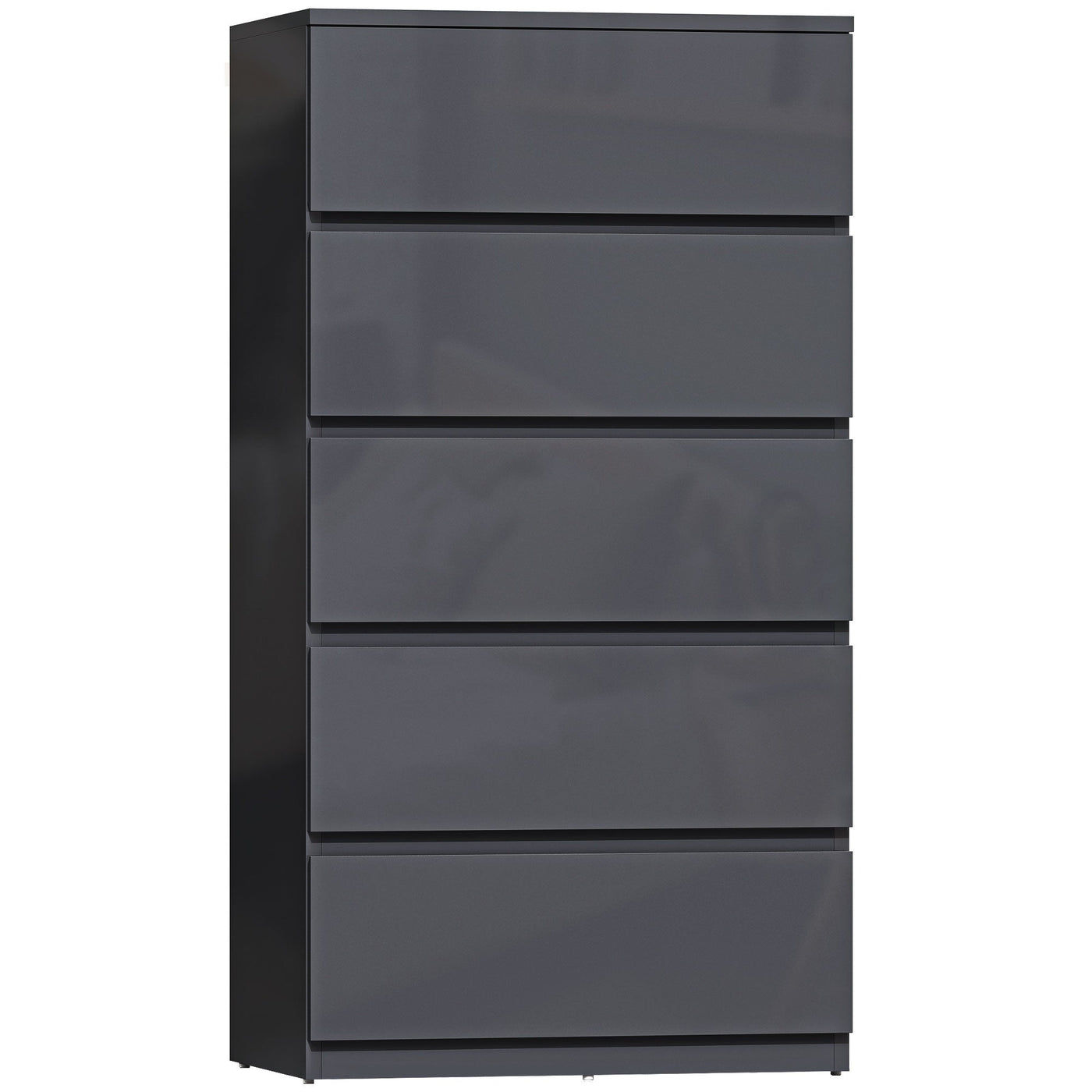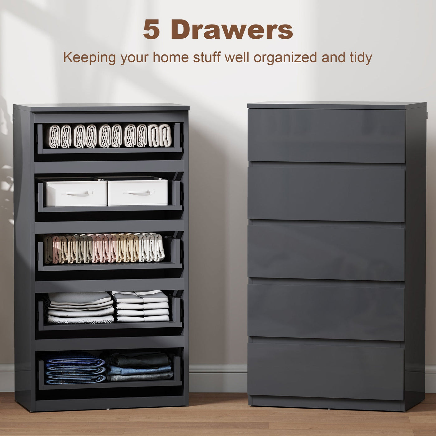 HOMCOM Chest of Drawers, 5-Drawer Storage Cabinets, Modern Dresser, Storage Drawer Unit for Bedroom - High Gloss Grey