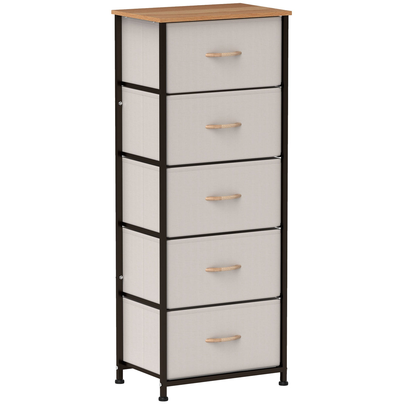 HOMCOM Fabric Chest of Drawers, Industrial Bedroom Dresser with 5 Fabric Drawers, Steel Frame and Wooden Top for Nursery, Living Room, Hallway, Cream White - Cream