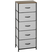 HOMCOM Fabric Chest of Drawers, Industrial Bedroom Dresser with 5 Fabric Drawers, Steel Frame and Wooden Top for Nursery, Living Room, Hallway, Grey - Grey