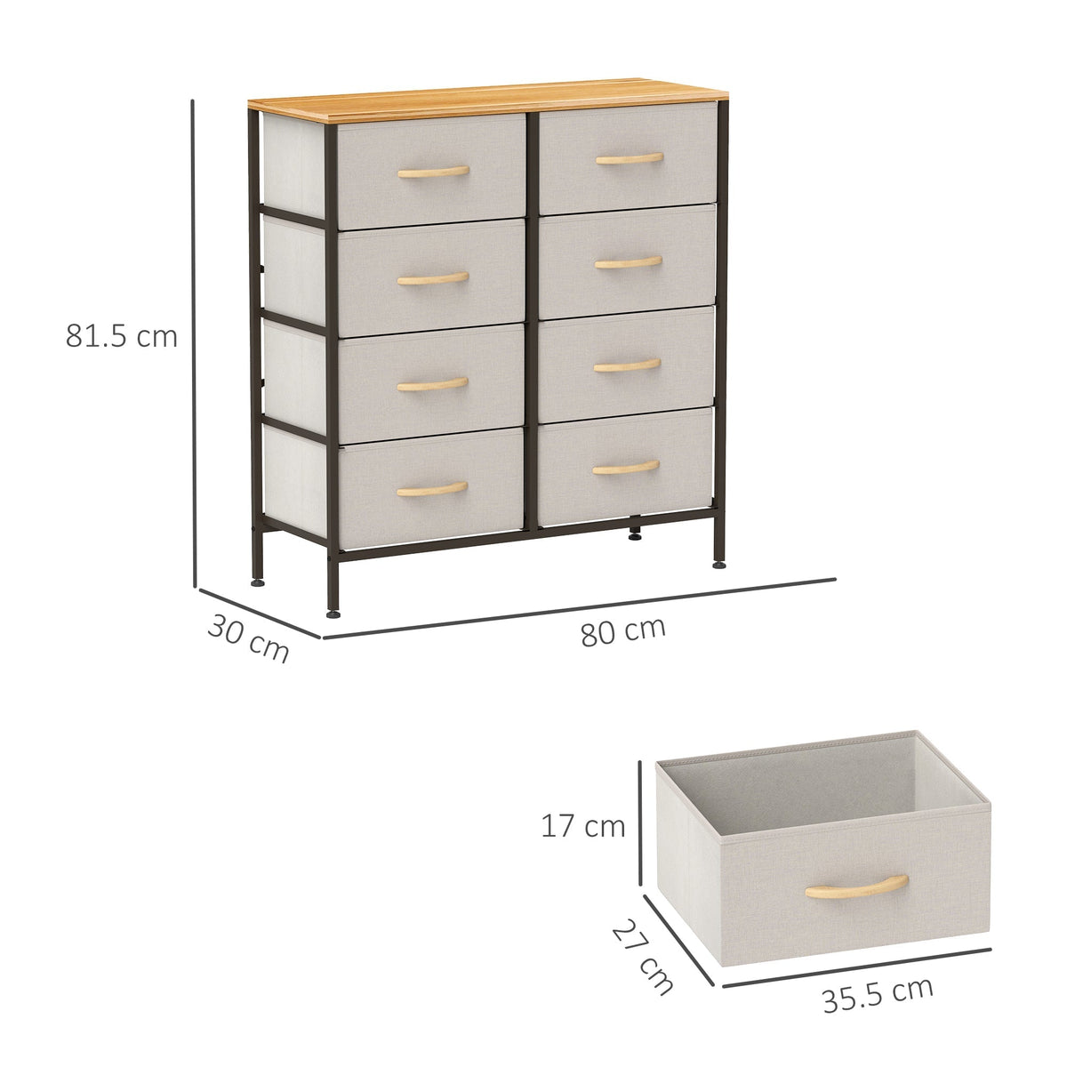 HOMCOM Fabric Chest of Drawers, Industrial Bedroom Dresser with 8 Fabric Drawers, Steel Frame and Wooden Top for Nursery, Living Room, Hallway, Cream White - Cream