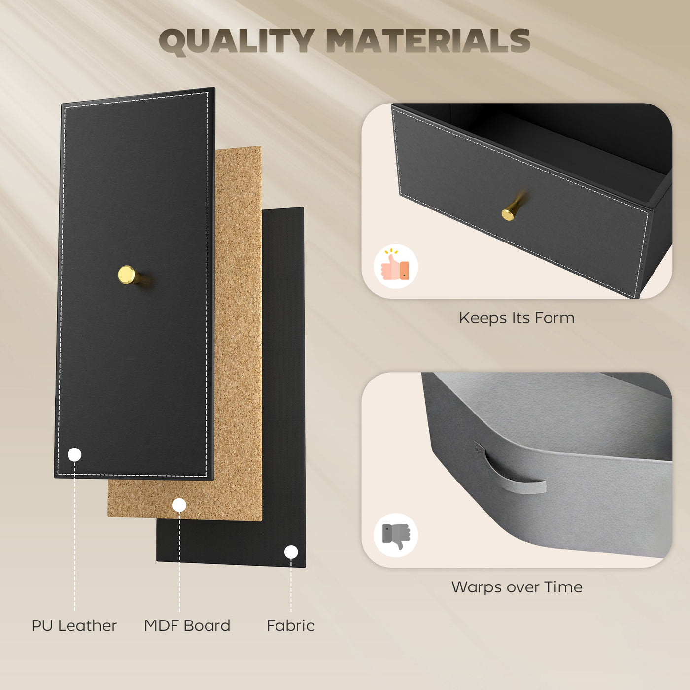 HOMCOM Faux Leather Front Chest of Drawers - Black - Black