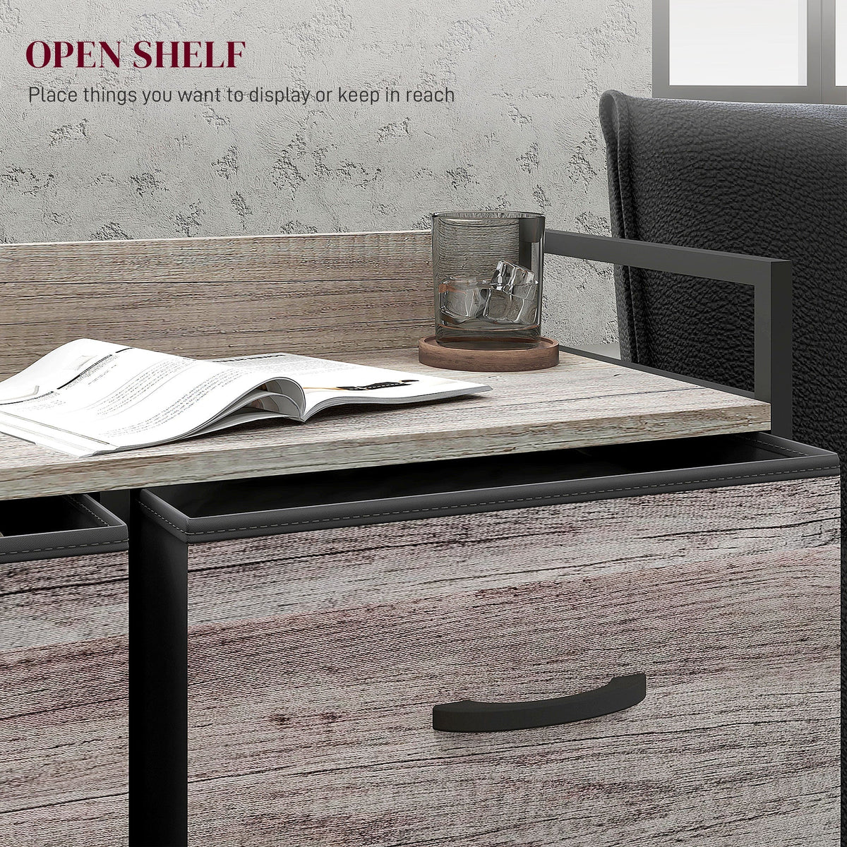 HOMCOM Rustic Chest of Six Fabric Drawers - Grey Wood Effect - Grey Wood Effect