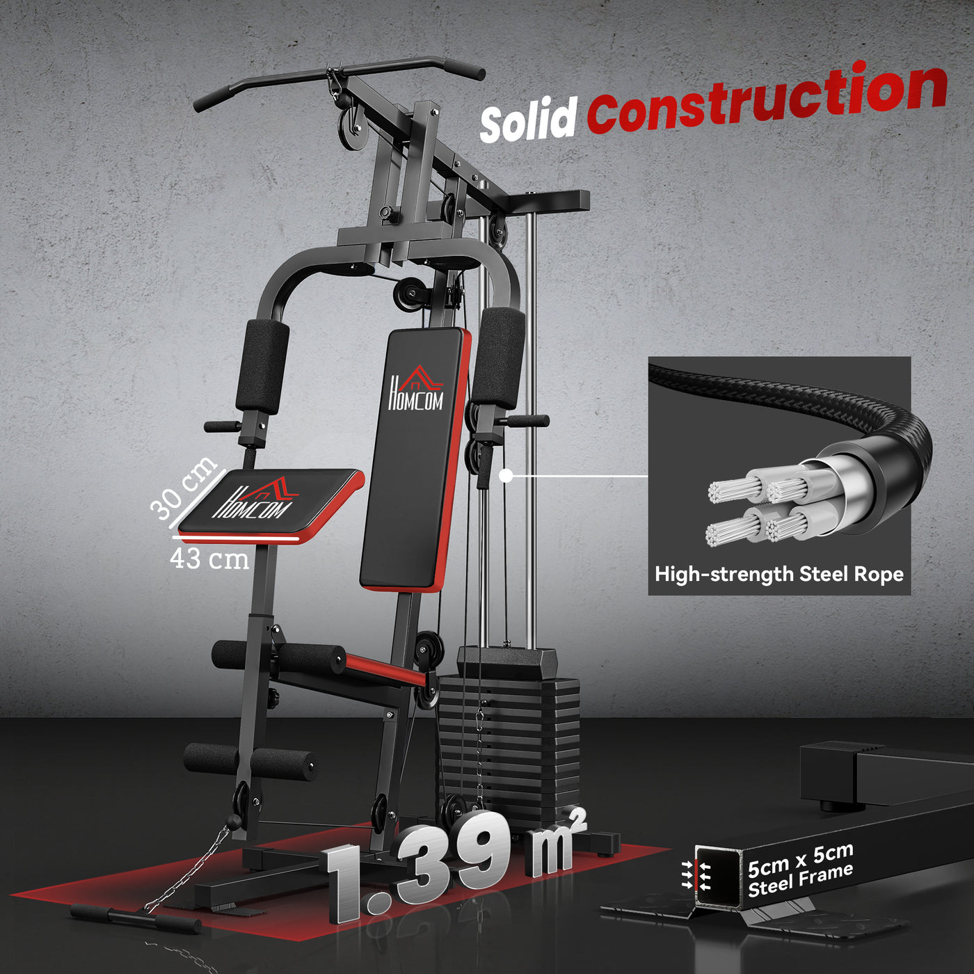 HOMCOM Multigym Station, with 66KG Weight Stack, for Strength Training - Red & Black - Black, Red