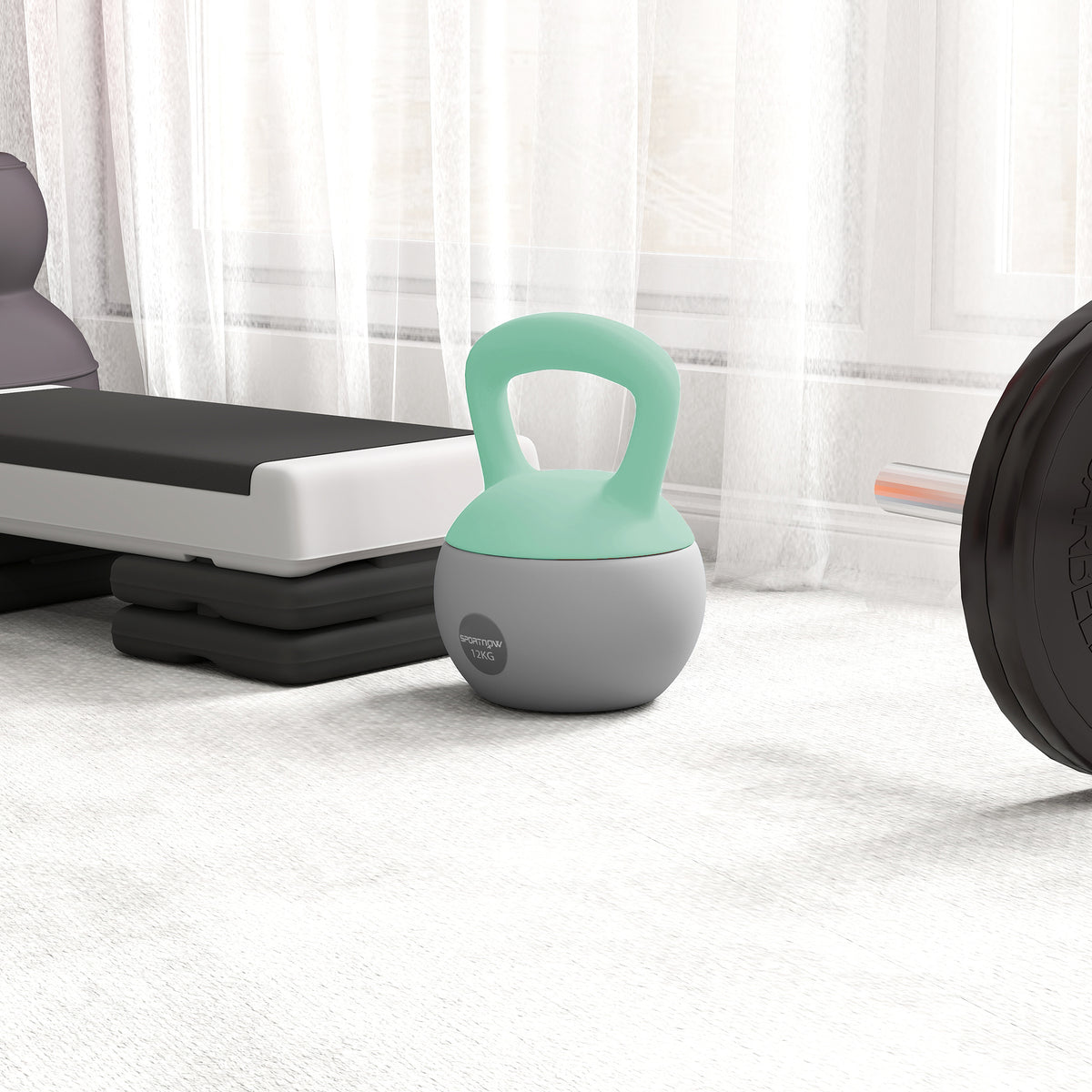 SPORTNOW 12KG Soft Kettlebell, Kettlebell with Non-Slip Handle for Home Gym, Weight Lifting, Strength Training, Green/Grey - Grey, Green