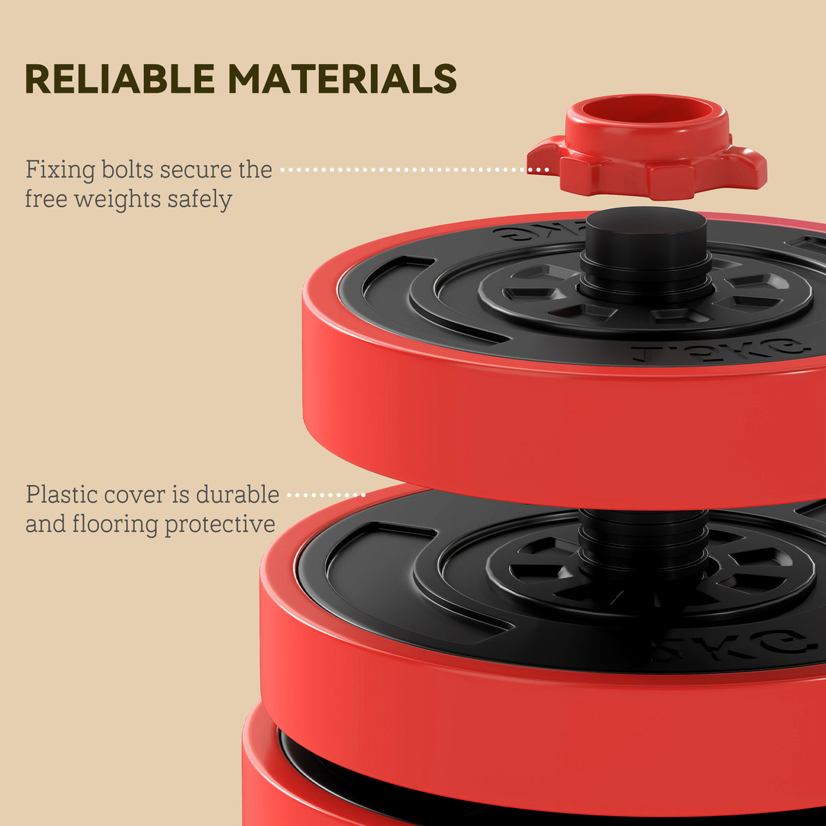 SPORTNOW 30kg Four-In-One Adjustable Weight Dumbbells Set, Barbell, Kettlebell, Push Up Stand - Red - Red