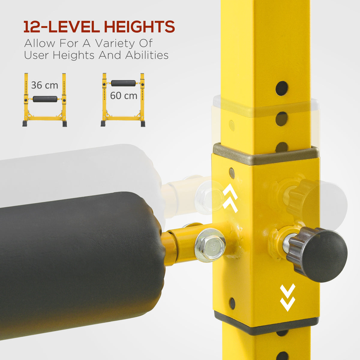 SPORTNOW Bulgarian Split Squat Stand, 12-Level Adjustable Single Leg Squat Machine with Foam Roller and Anti-Slip Pads for Lower Body Strength Training, Yellow - Yellow
