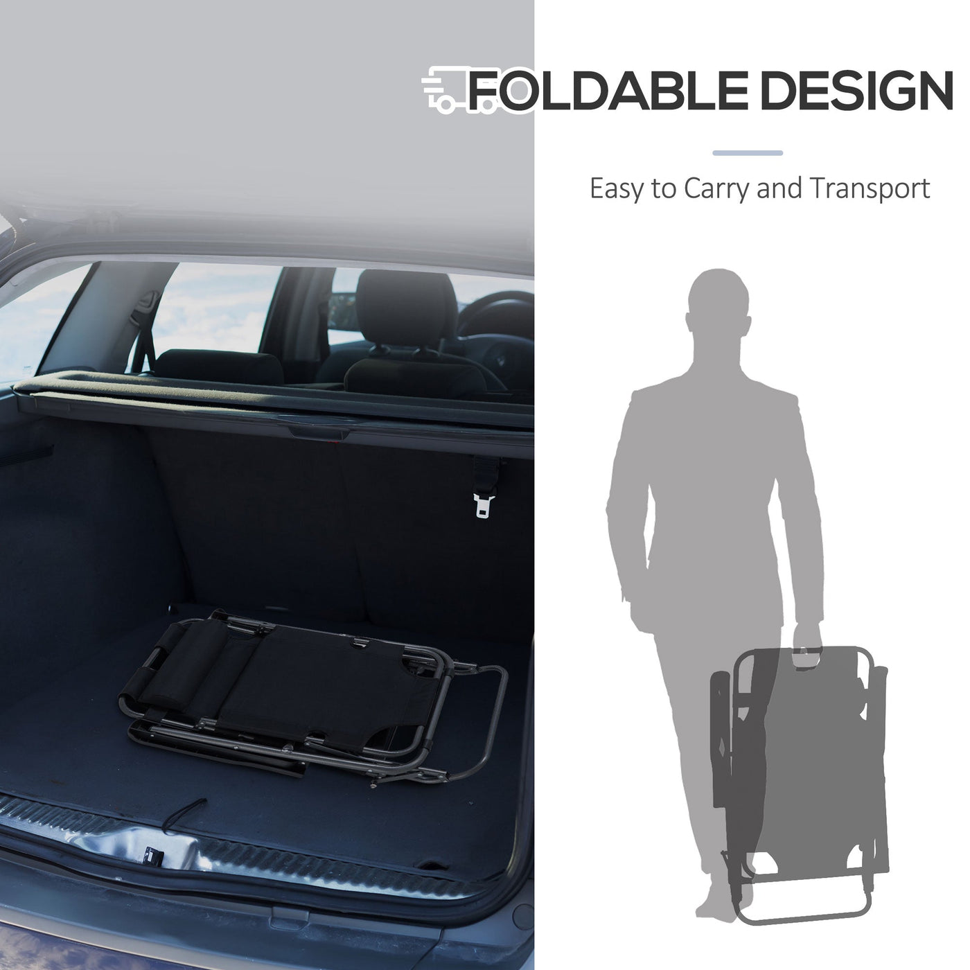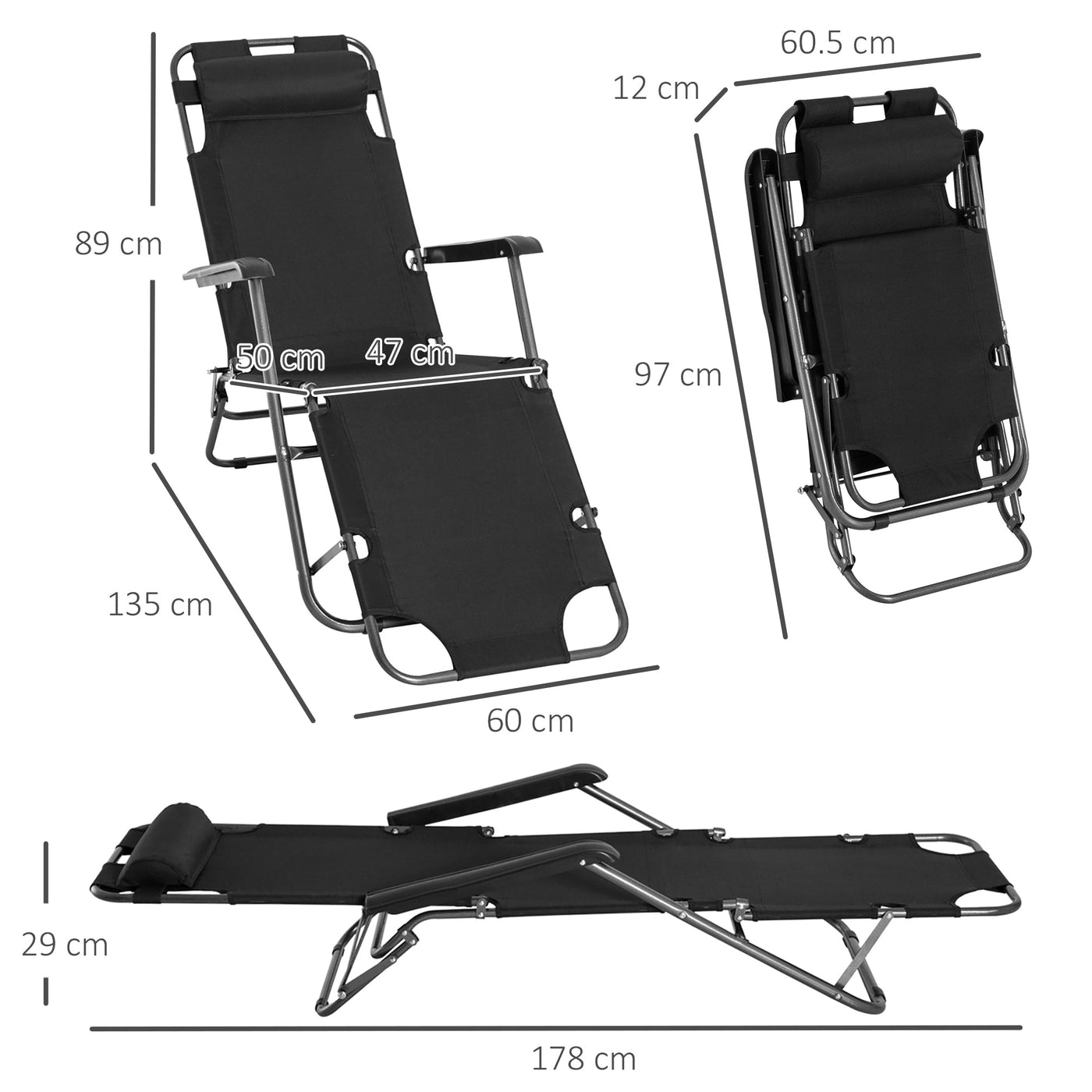 Outsunny 2 in 1 Folding Sun Lounger Reclining Garden Chair Set of 2 with 2-Level Adjustable Backrest, Outdoor Zero Gravity Recliner Garden Chairs with Head Pillow and Armrests, Black - Black