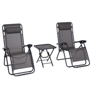 Outsunny 3pcs Folding Zero Gravity Chairs Sun Lounger Table Set w/ Cup Holders Reclining Garden Yard Pool, Dark Grey - Dark Grey
