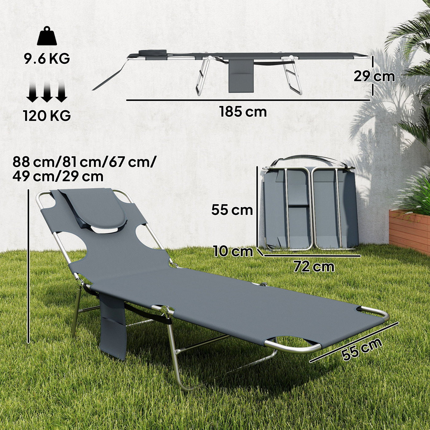 Outsunny 5-Position Adjustable Sun Loungers Set of 2 with Reading Hole and Side Pocket, Dark Grey - Dark Grey