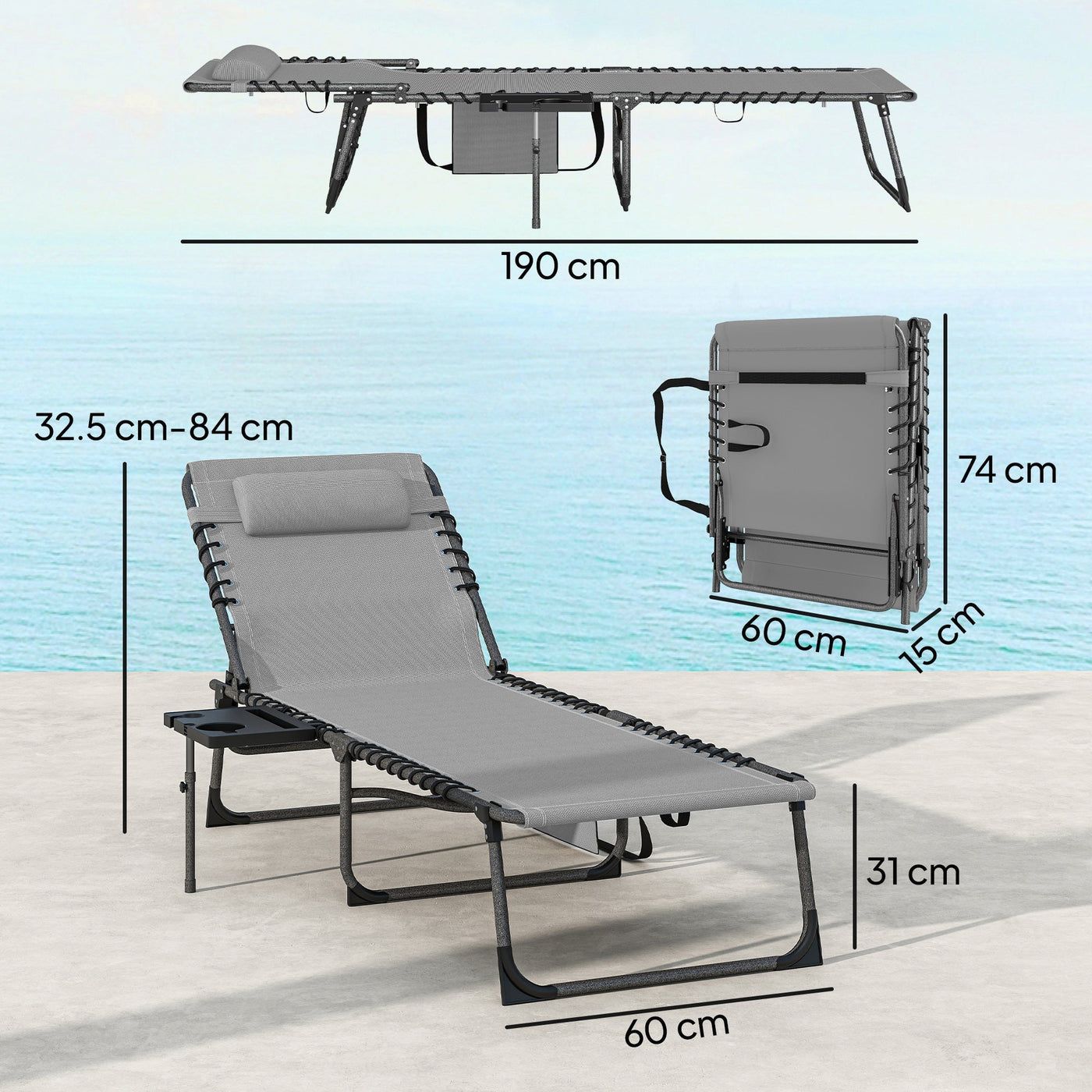 Outsunny Five-Position Reclining Sun Loungers Set of 2 - Grey - Grey