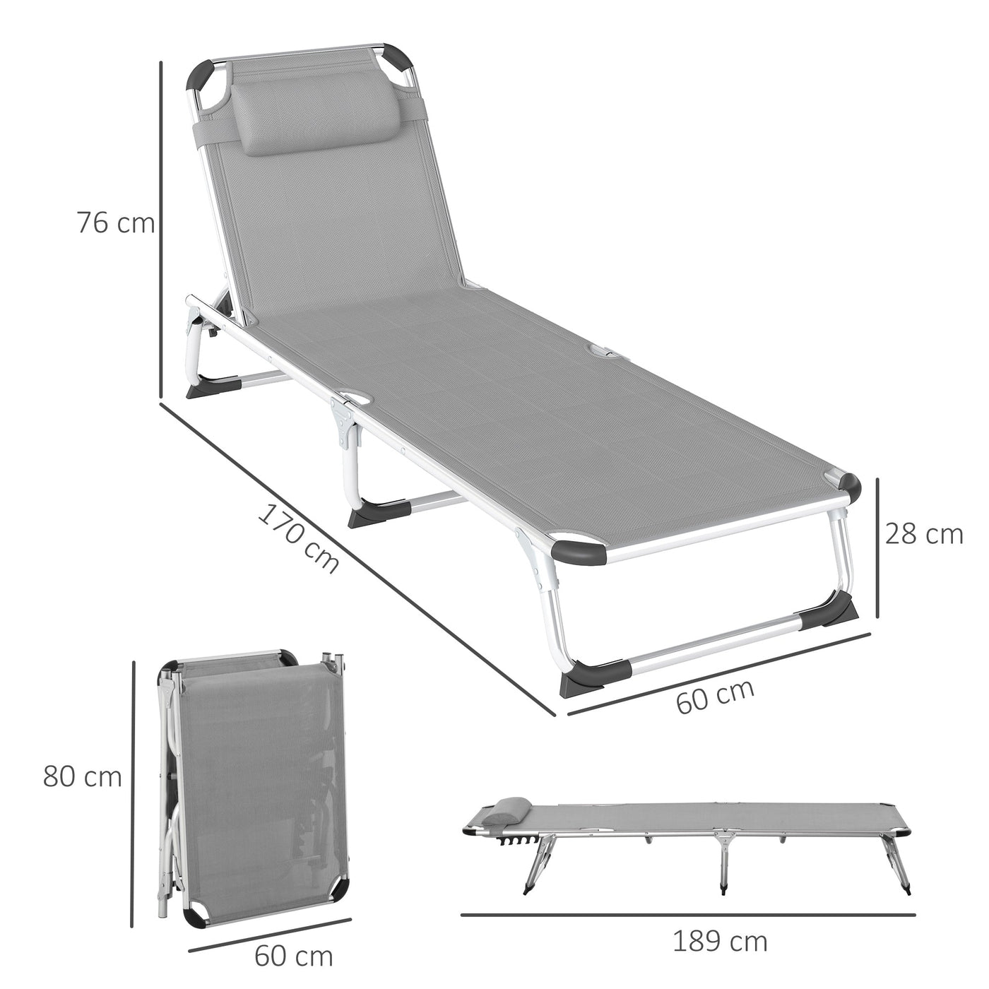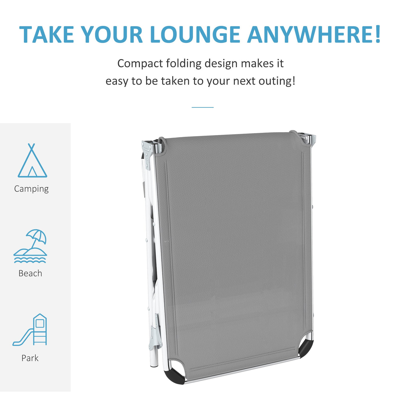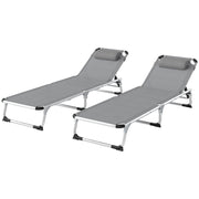 Outsunny Foldable Outdoor Sun Lounger Set of 2, Reclining Lounge Chair Camping Bed Cot with Pillow 4-Level Adjustable Back Aluminium Frame, Light Grey - Light Grey