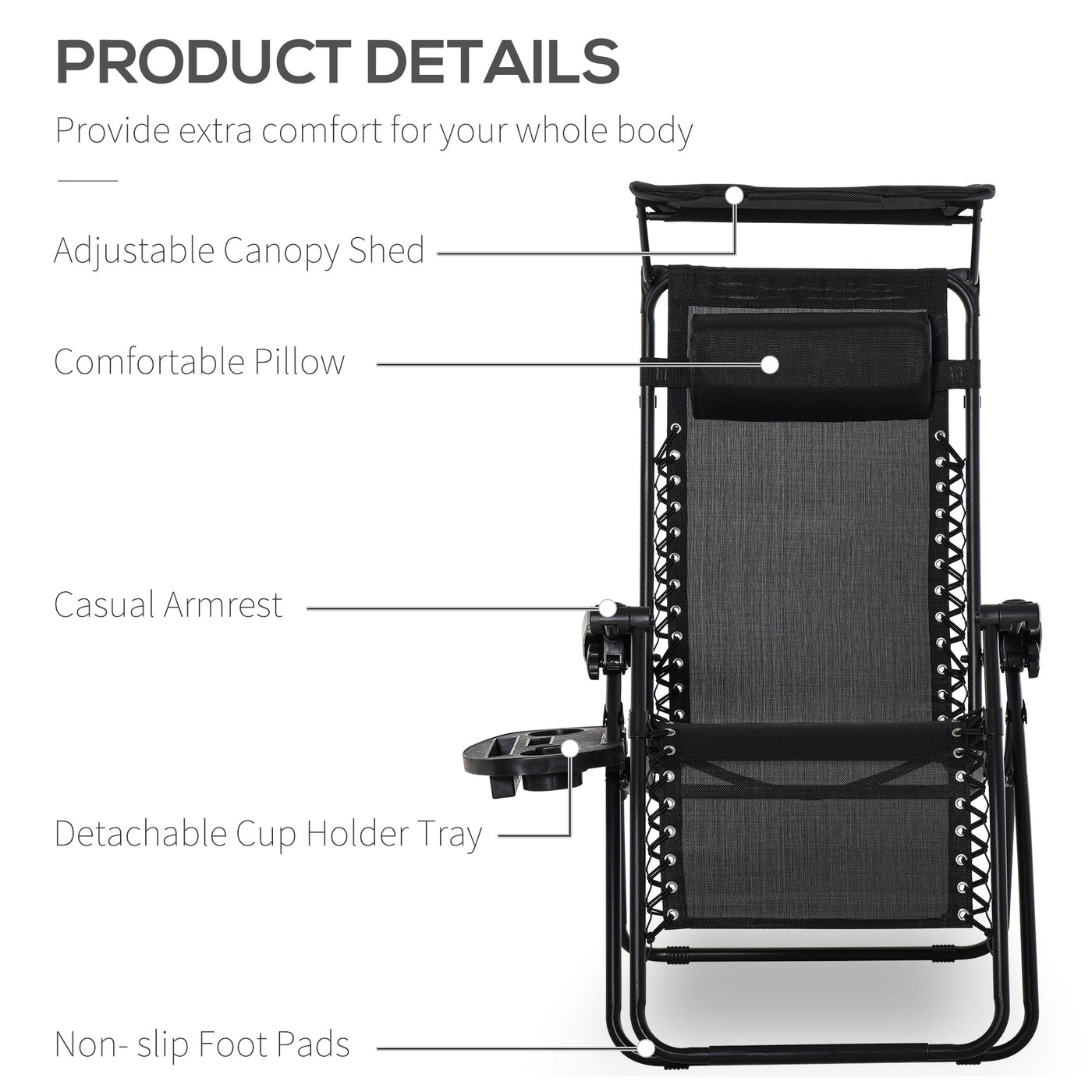 Outsunny Folding Zero Gravity Sun Lounger, with Sun Canopy - Black - Black