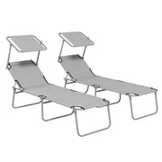 Outsunny Outdoor Foldable Sun Lounger Set of 2, 4 Level Adjustable Backrest Reclining Sun Lounger Chair with Angle Adjust Sun Shade Awning for Beach, Garden, Patio, Light Grey - Light Grey