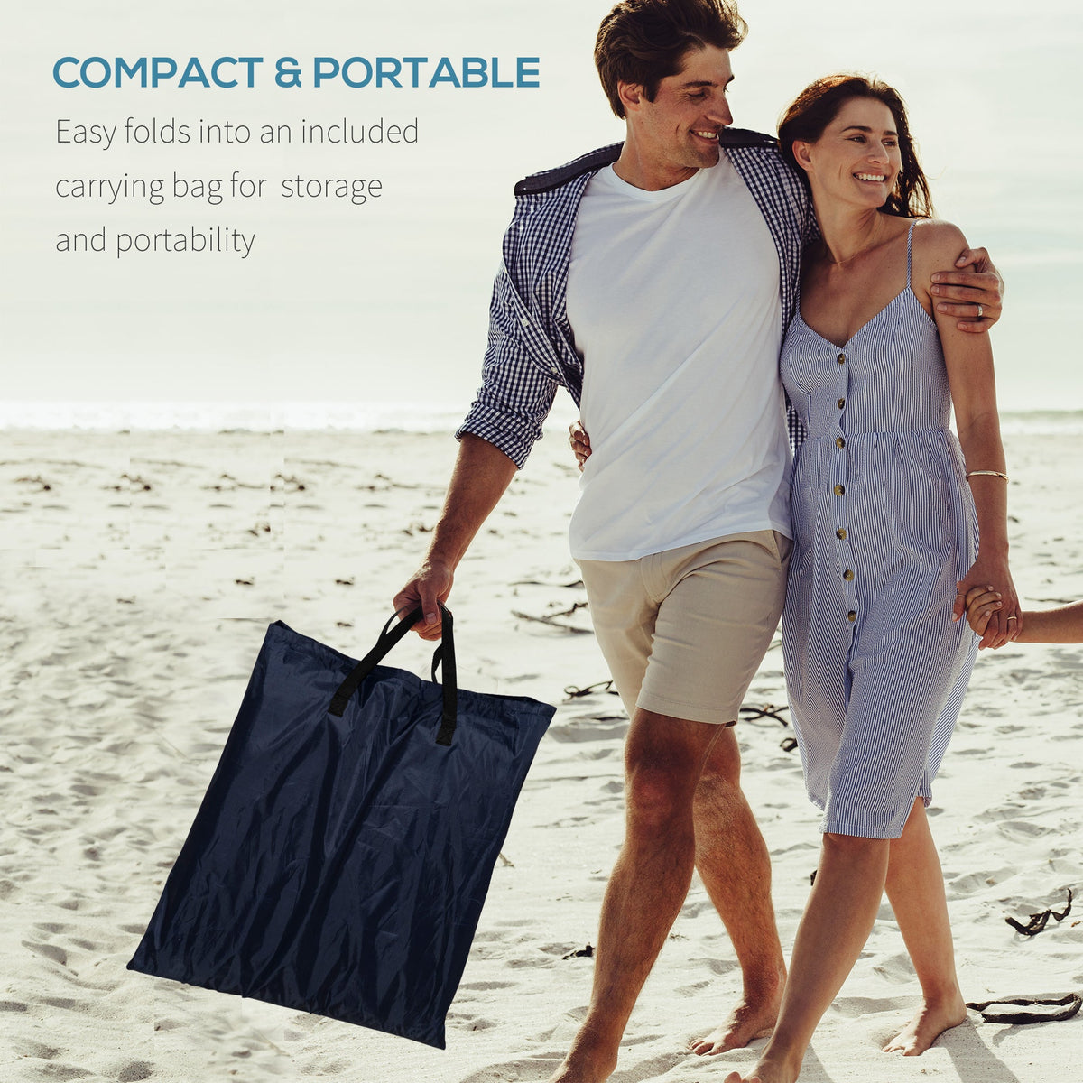 Outsunny Set of 2 Foldable Garden Beach Chair Mat Lightweight Outdoor Sun Lounger Seats Adjustable Back Metal Frame PE Fabric Head Pillow w/ Carry Bag, Blue - Blue