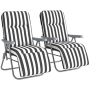 Outsunny Set of 2 Foldable Patio Sun Lounger with Adjustable Backrest and Cushion, Grey and White - Grey and White