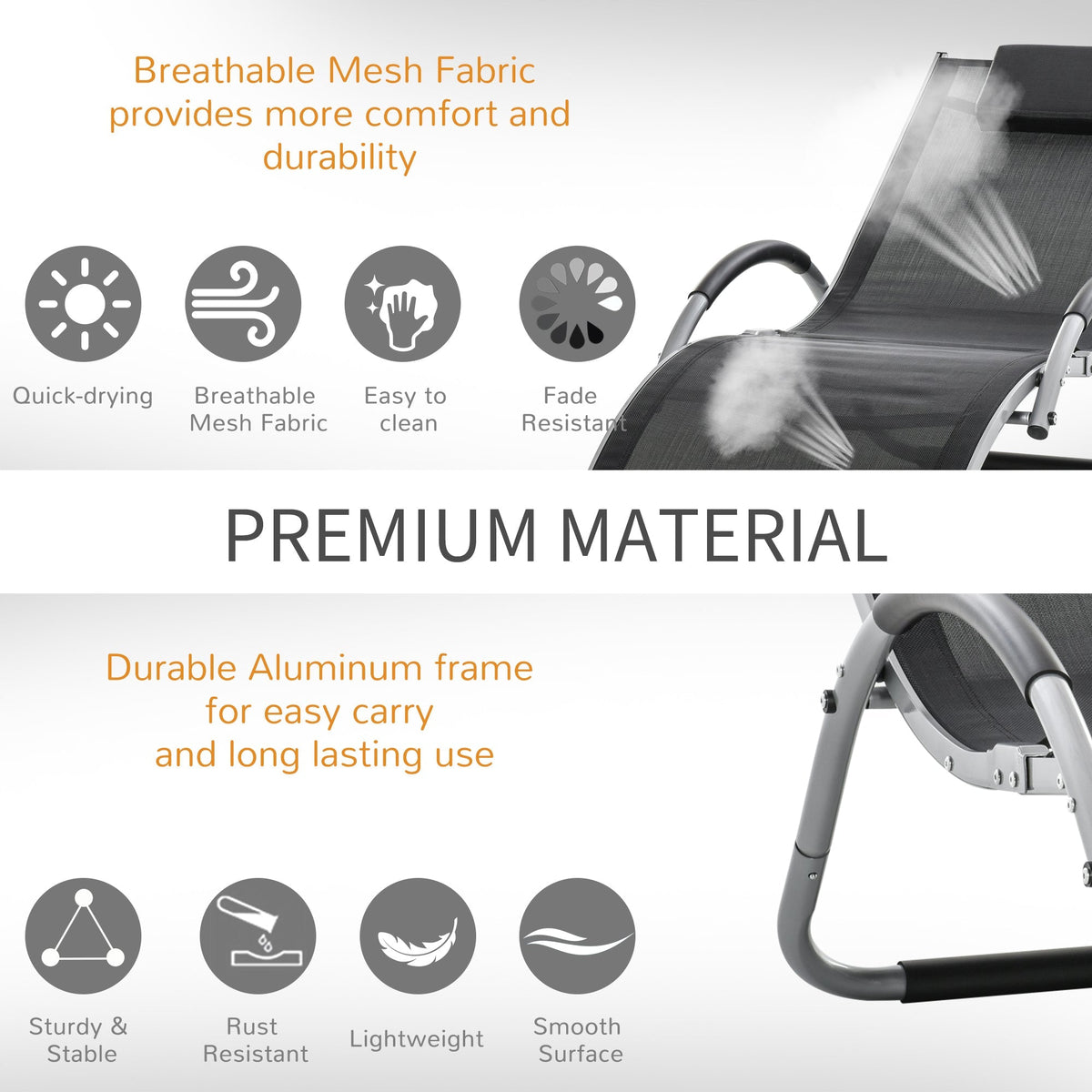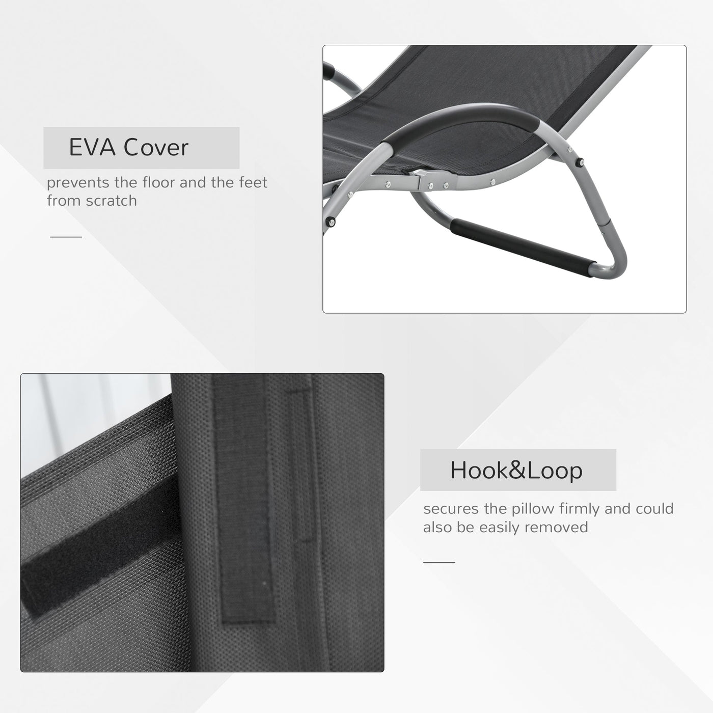 Outsunny Sun Lounger Reclining Chair Portable Armchair with Pillow for Garden Patio Outside Aluminium Frame, Black - Black