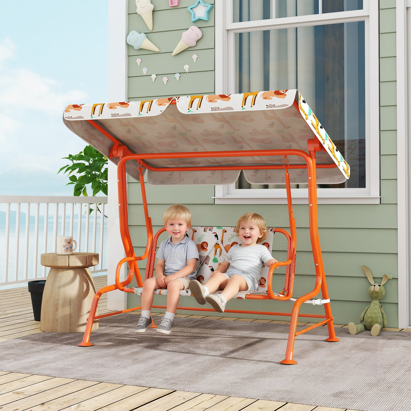 AIYAPLAY Kids Porch Swing, 2-Seater Patio Swing Bench Hammock with Seat Belts, Adjustable Canopy for Garden, Orange - Orange