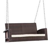 Outsunny 2 Seater Rattan Garden Swing Chair, Porch Swing Bench Loveseat with Cushion, Wicker Outdoor Hanging Swinging Seat with 2 Metal Chains, 250 KG Capacity for Patio, Balcony, Cream White - Cream