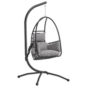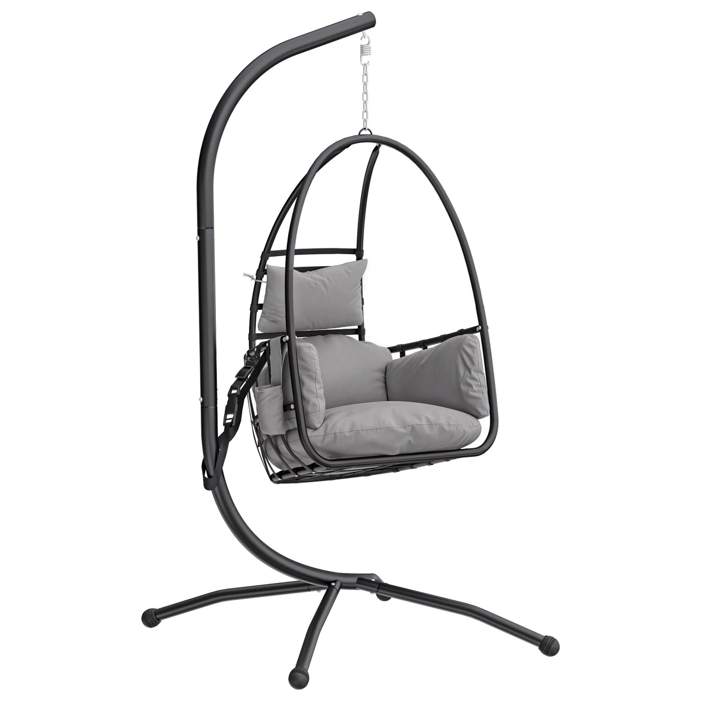 Outsunny Hanging Egg Chair, Indoor Outdoor Swinging Hammock Chair with Stand, Foldable Basket, Side Pocket, Dark Grey - Dark Grey